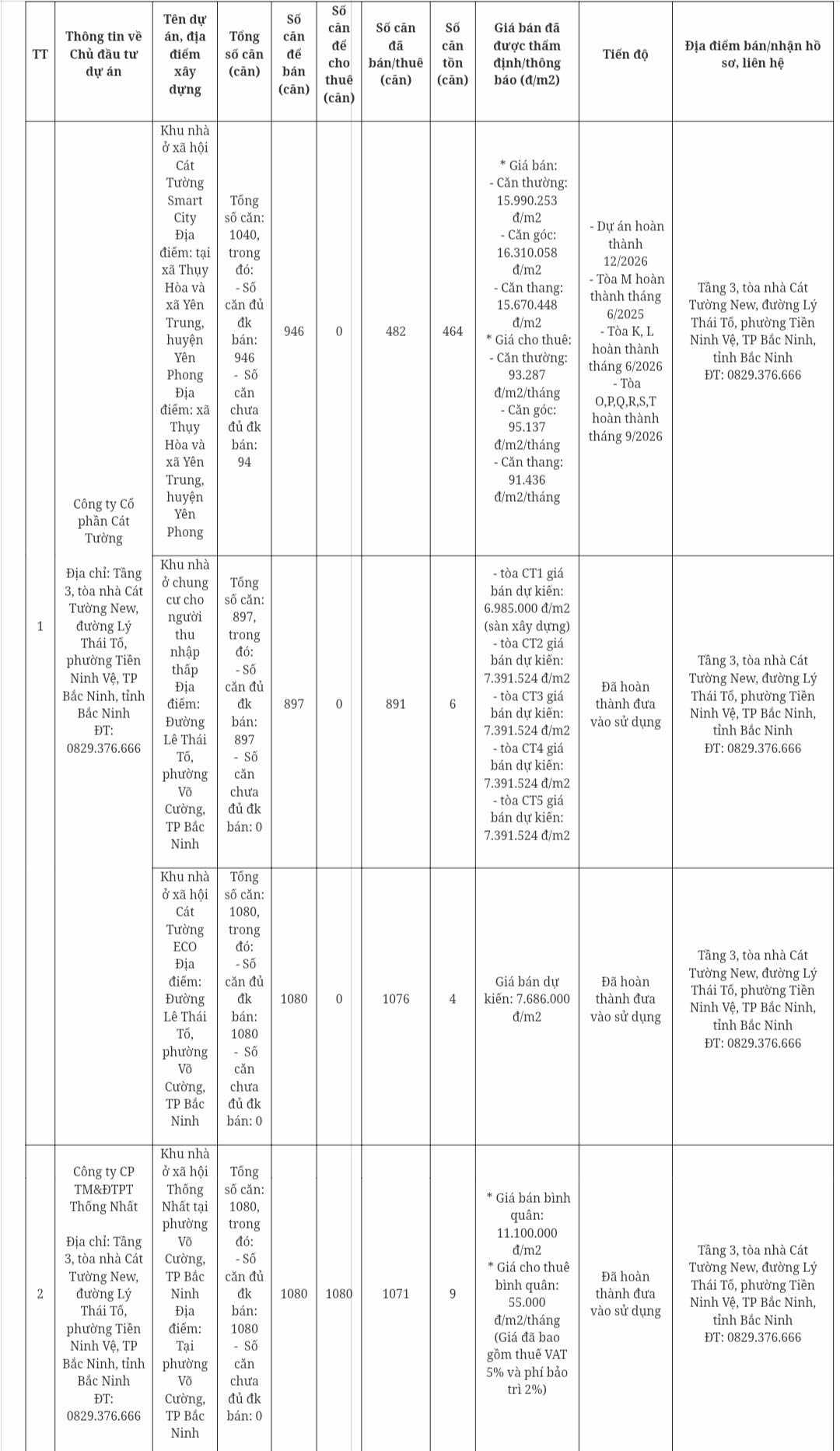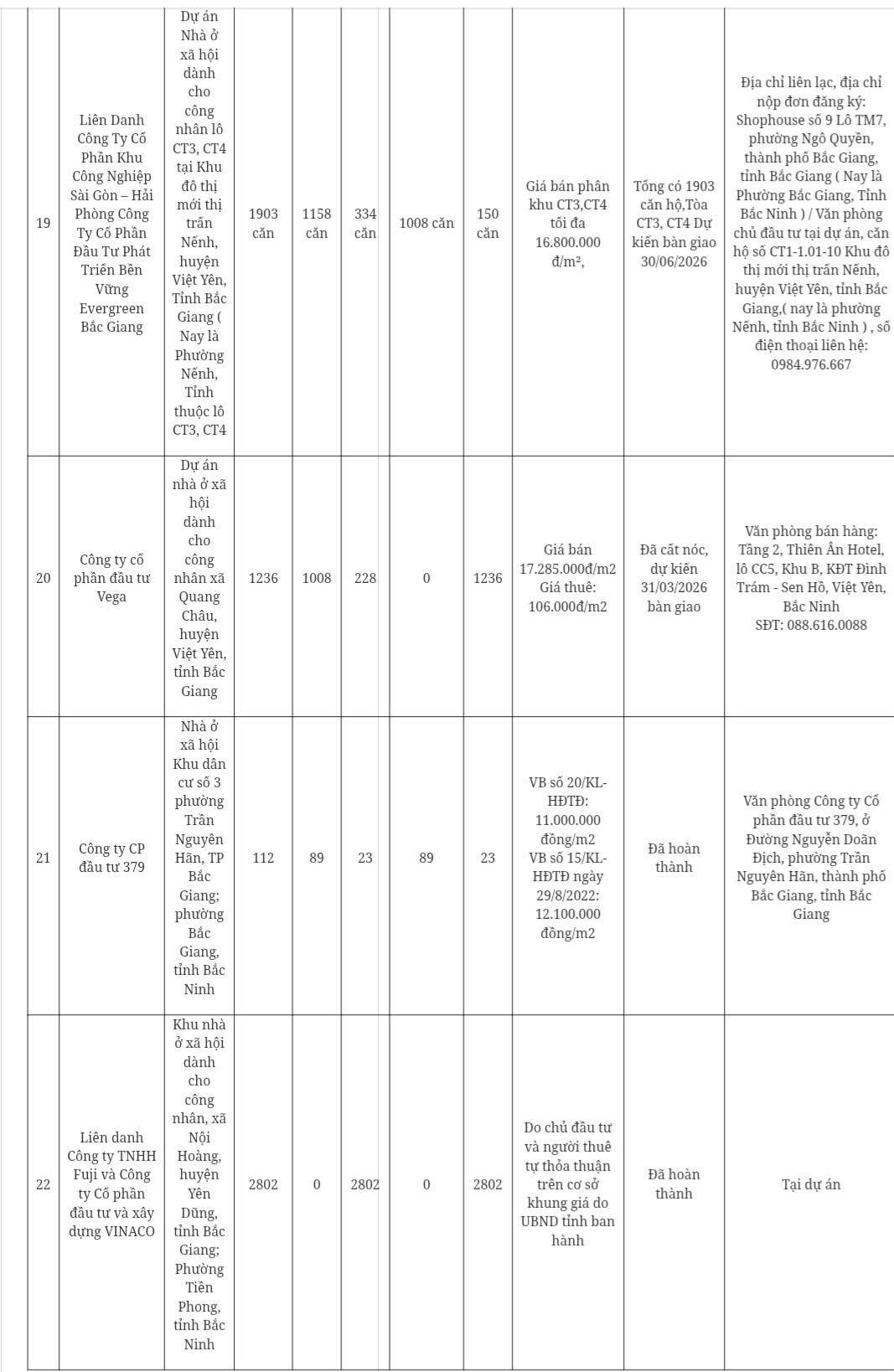 Danh sách, giá bán và điểm nhận hồ sơ 22 dự án nhà ở xã hội tại Bắc Ninh đã đủ điều kiện kinh doanh trong tháng 10/2025 cụ thể như sau: