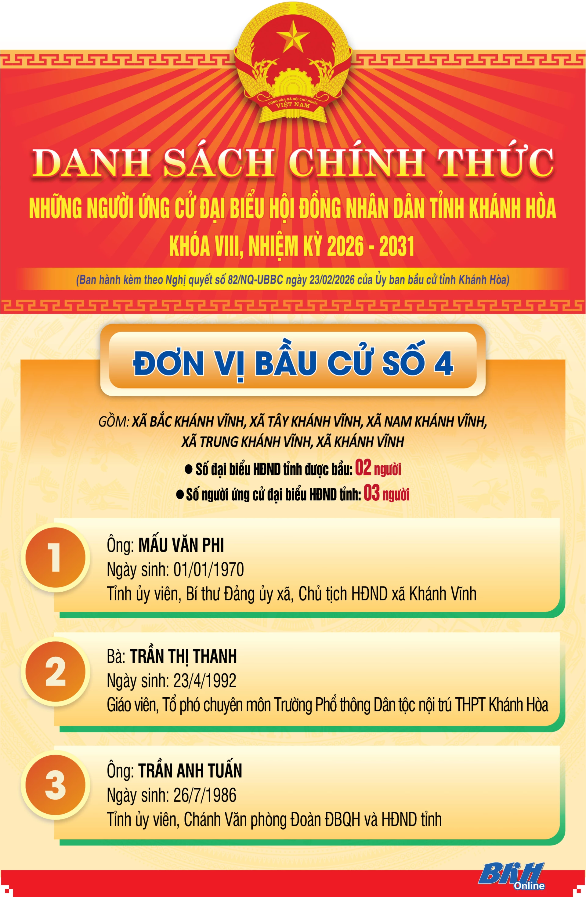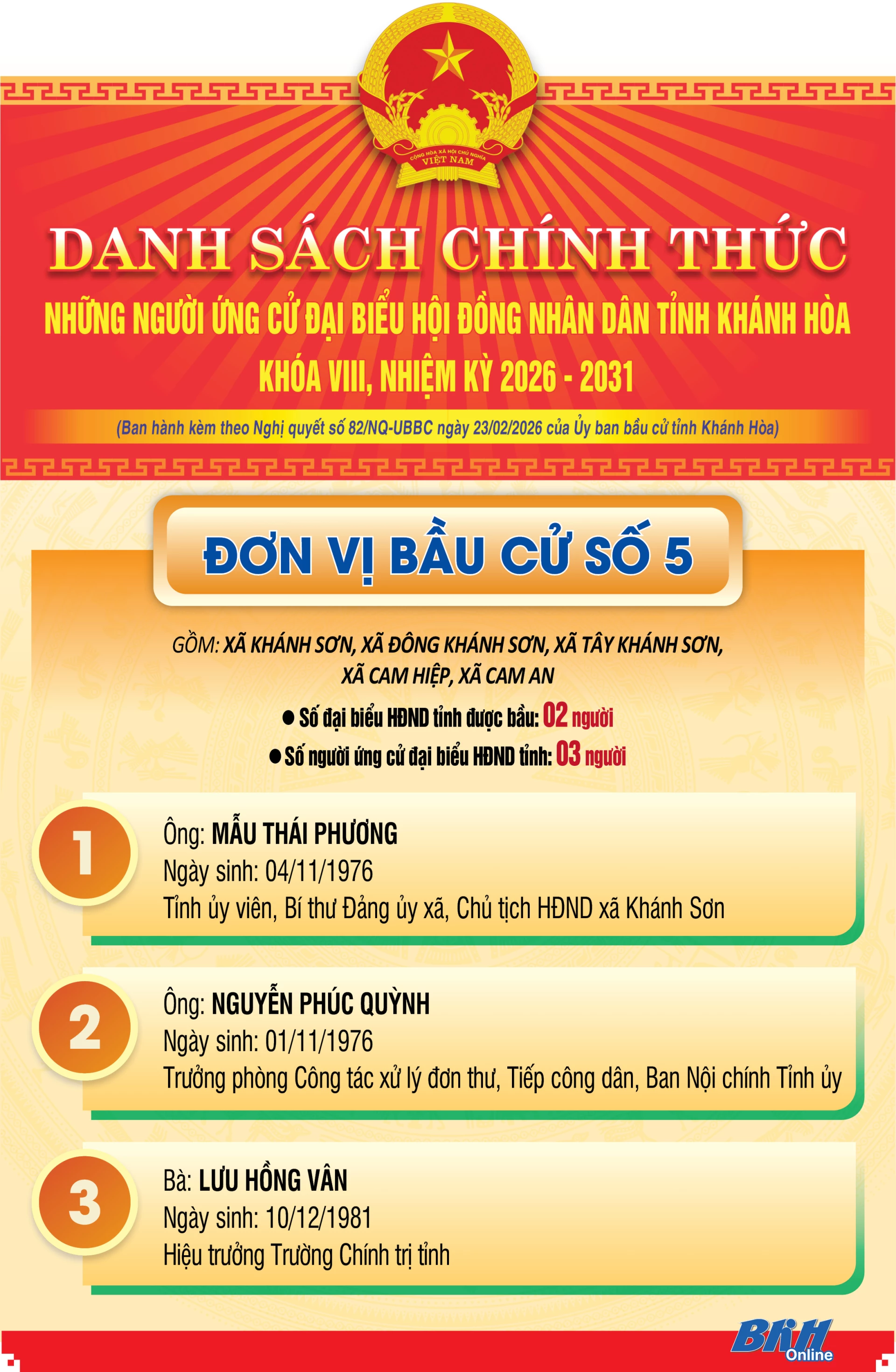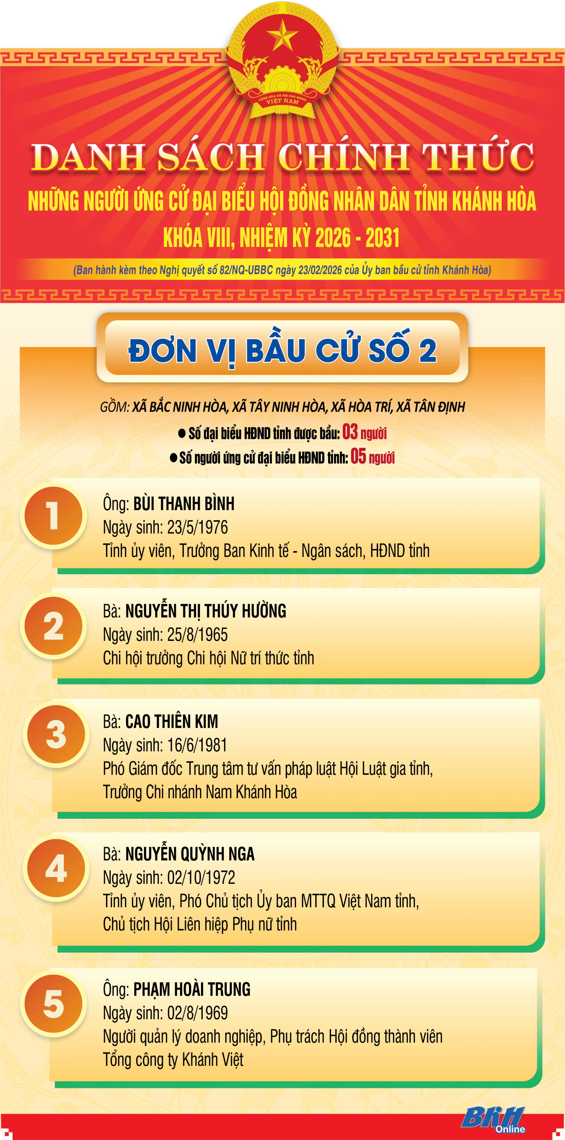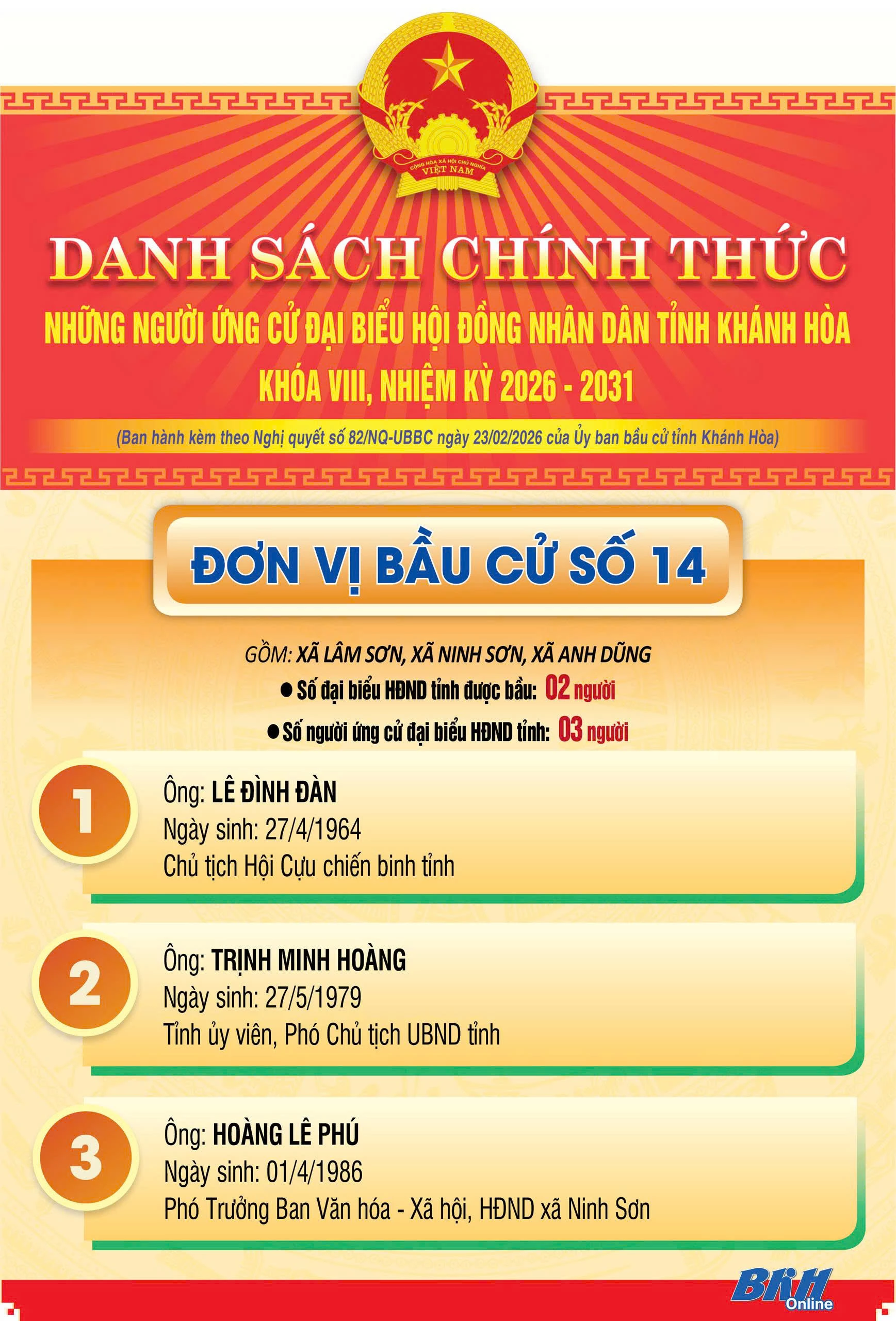 Nguồn Khánh Hòa : http://www.baokhanhhoa.vn/multimedia/infographic/202602/danh-sach-chinh-thuc-108-nguoi-ung-cu-dai-bieu-hdnd-tinh-khanh-hoa-nhiem-ky-2026-2031-c7d575f/