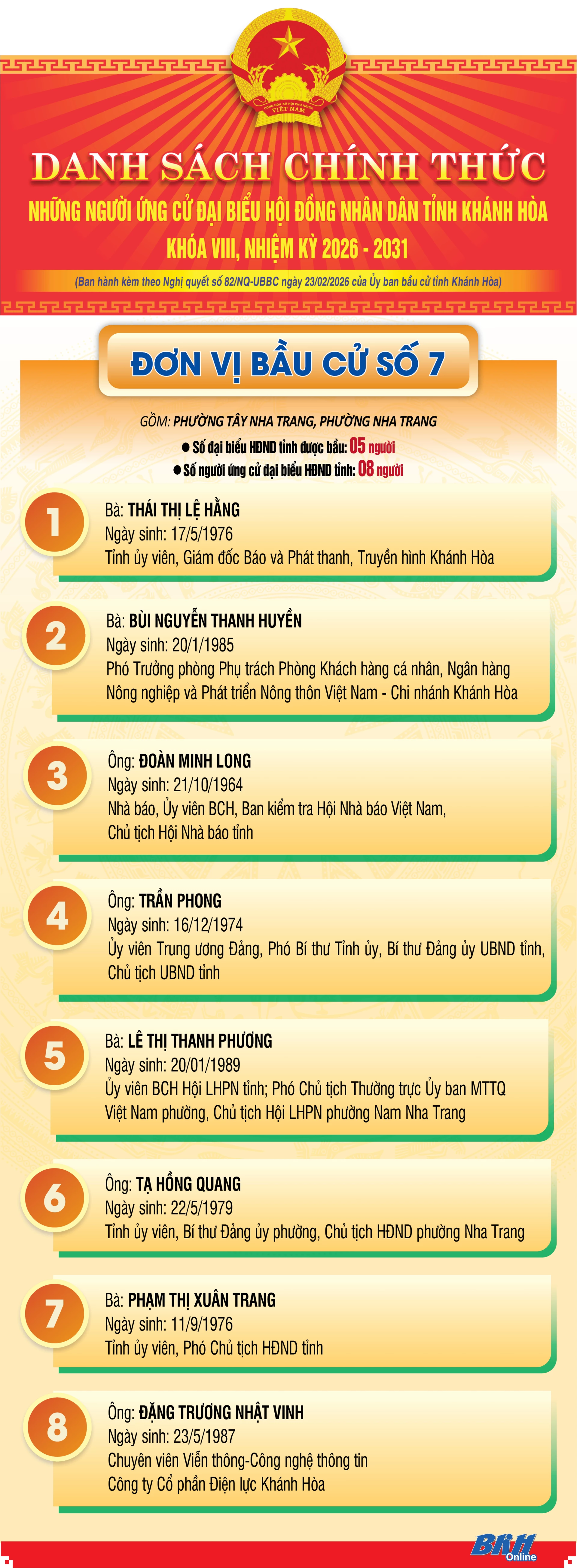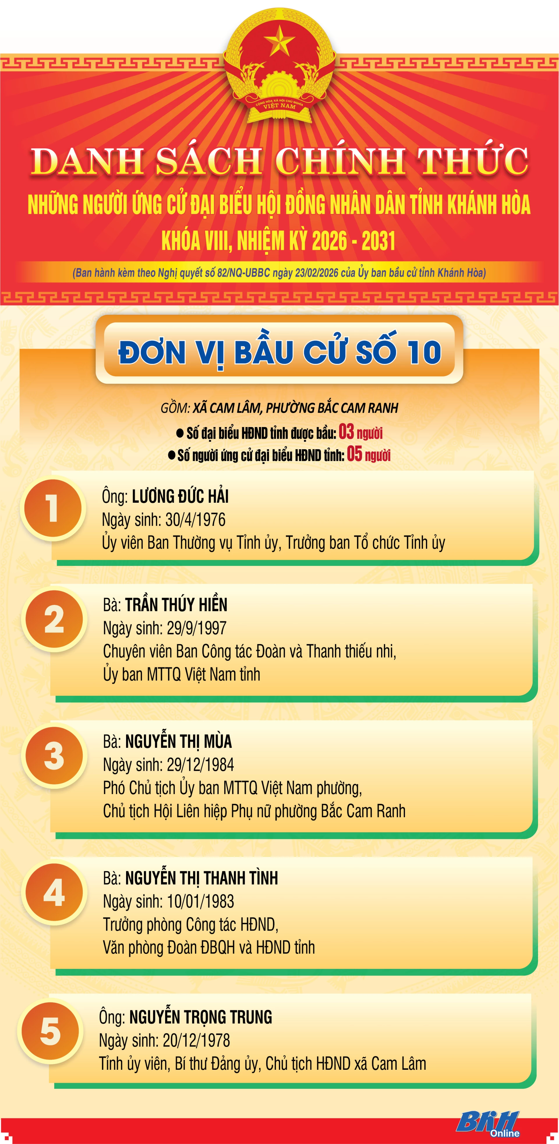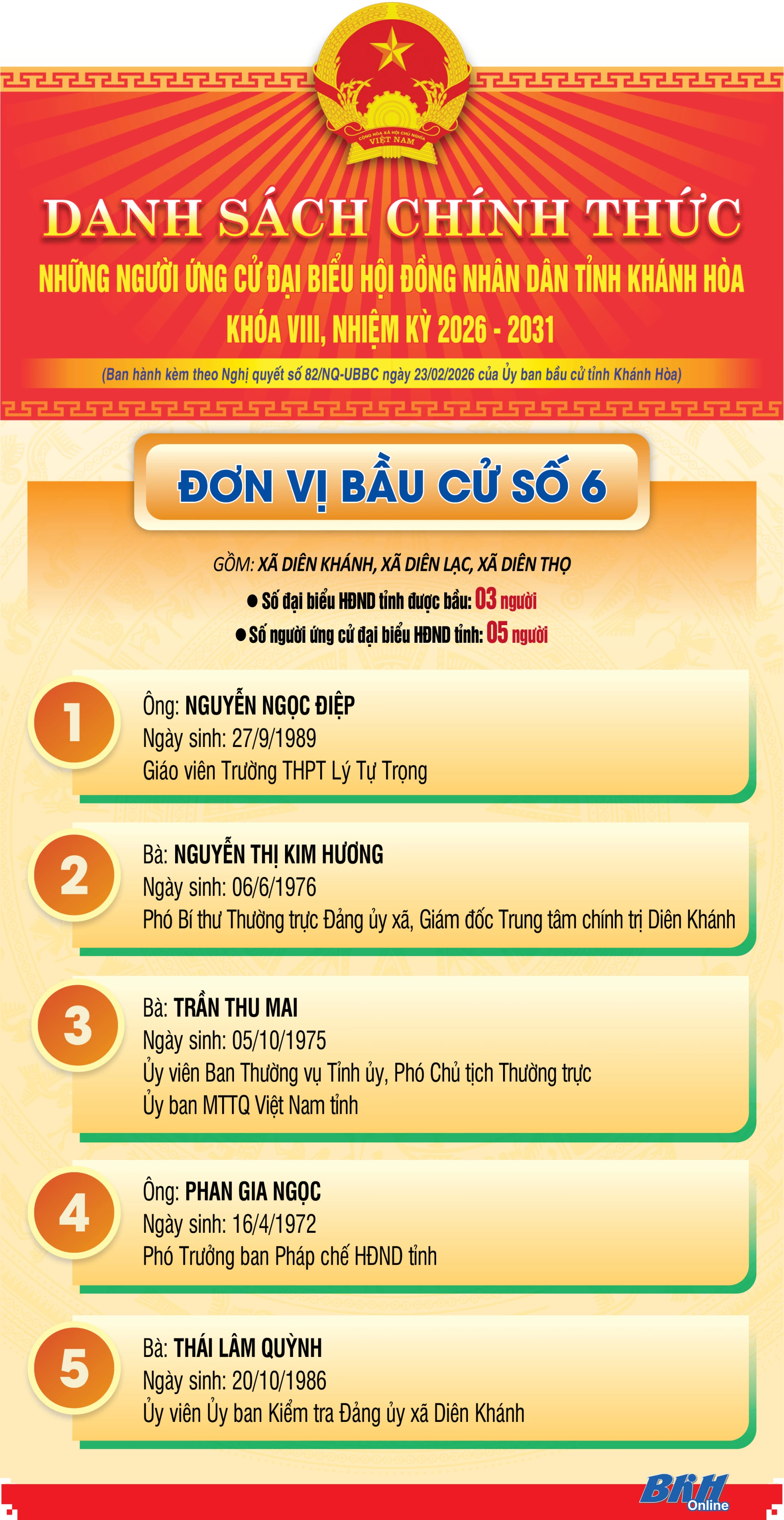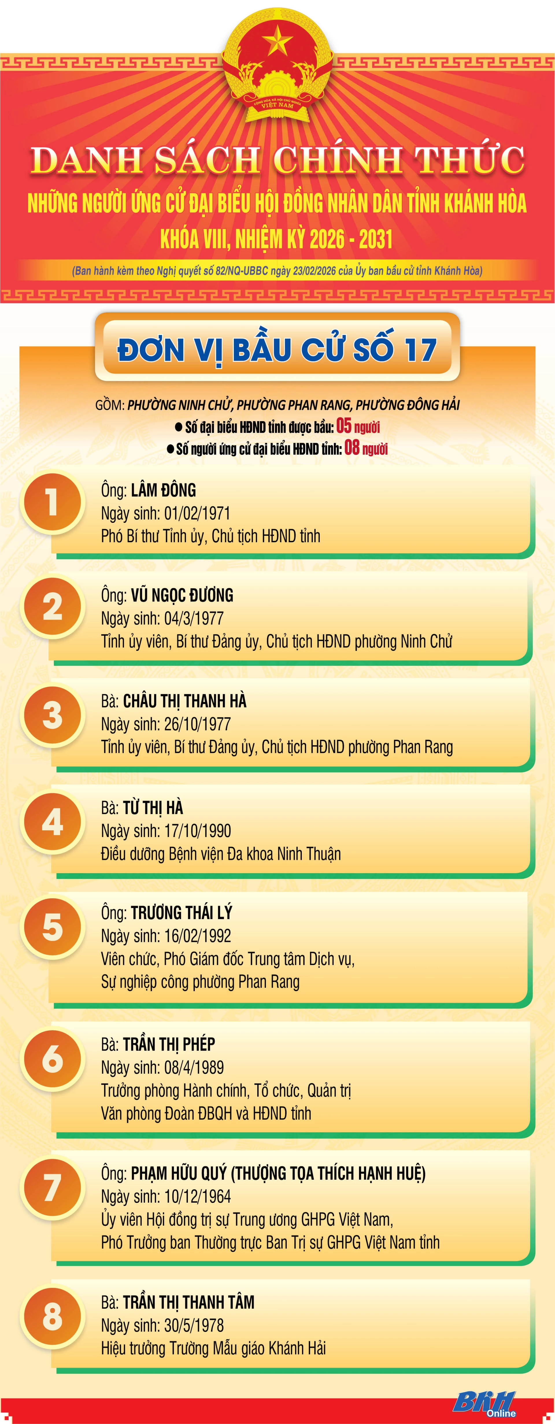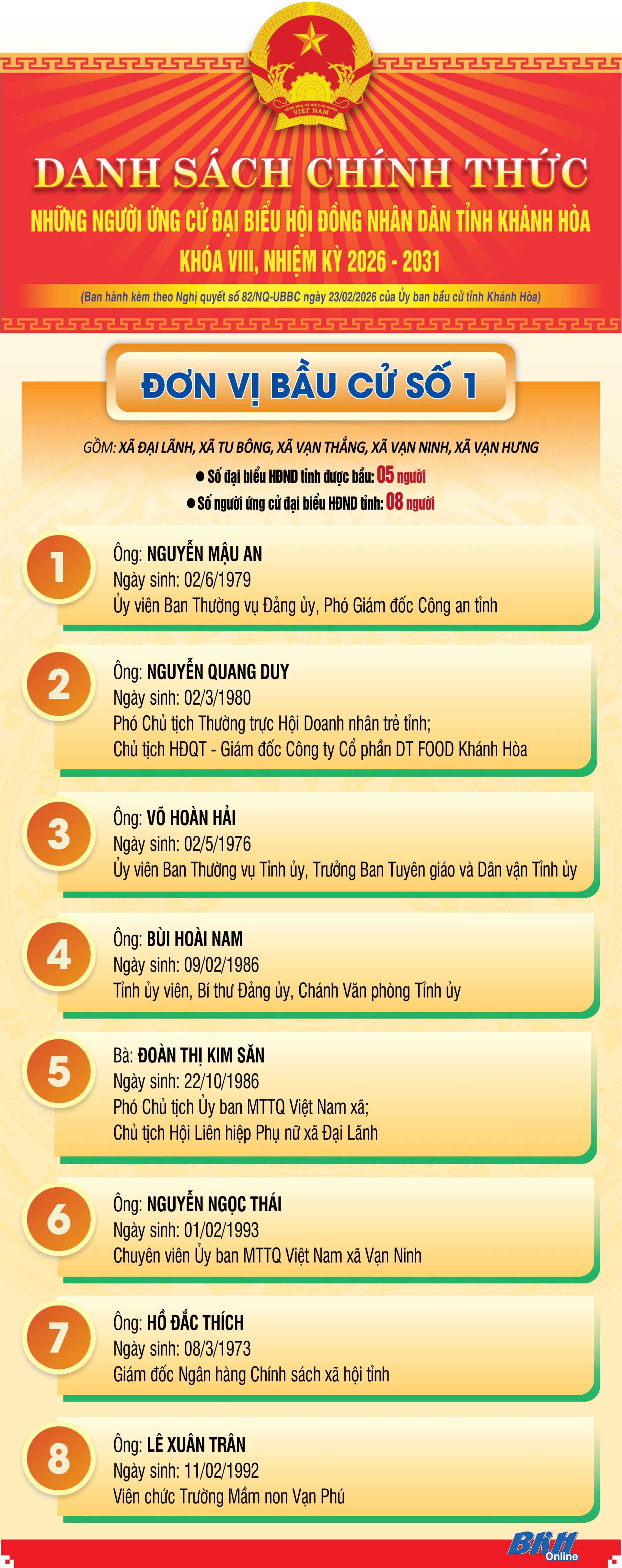 Nguồn Khánh Hòa : http://www.baokhanhhoa.vn/multimedia/infographic/202602/danh-sach-chinh-thuc-108-nguoi-ung-cu-dai-bieu-hdnd-tinh-khanh-hoa-nhiem-ky-2026-2031-c7d575f/