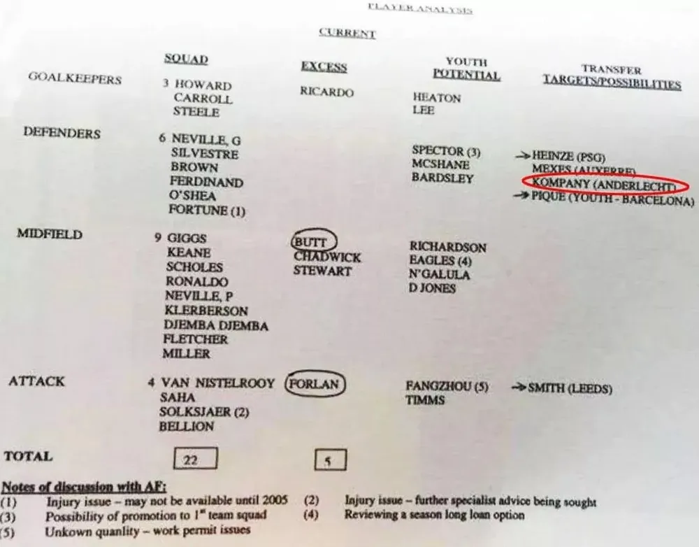 Những cầu thủ đã thành danh như Nicky Butt và Diego Forlan xuất hiện trong danh sách dự bị, báo hiệu khả năng họ sẽ bị đẩy đi. Trong khi đó, các cầu thủ trẻ triển vọng như Kieran Richardson, Tom Heaton và Phil Bardsley được liệt kê trong danh sách tiềm năng trẻ, bằng chứng cho thấy họ đang được đào tạo để trở thành "của để dành" trong tương lai ở đội một.