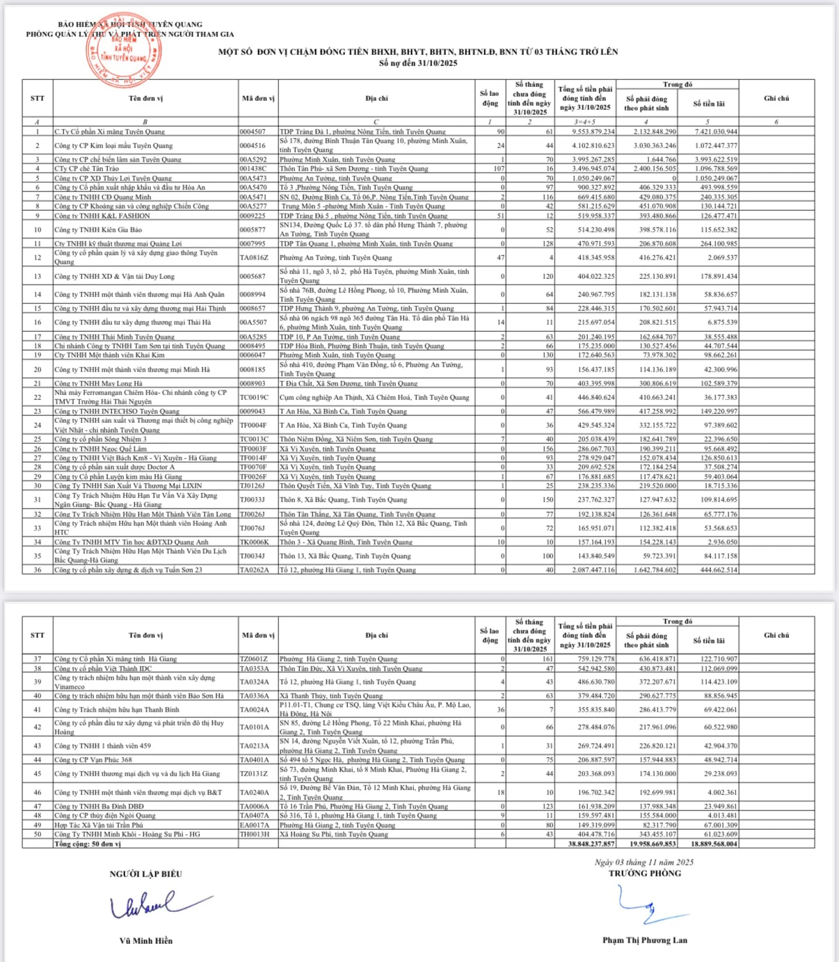 BHXH tỉnh phối hợp với Báo và phát thanh, truyền hình Tuyên Quang công khai danh sách 50 đơn vị chậm đóng BHXH, BHYT, BHTN từ 3 tháng trở lên.