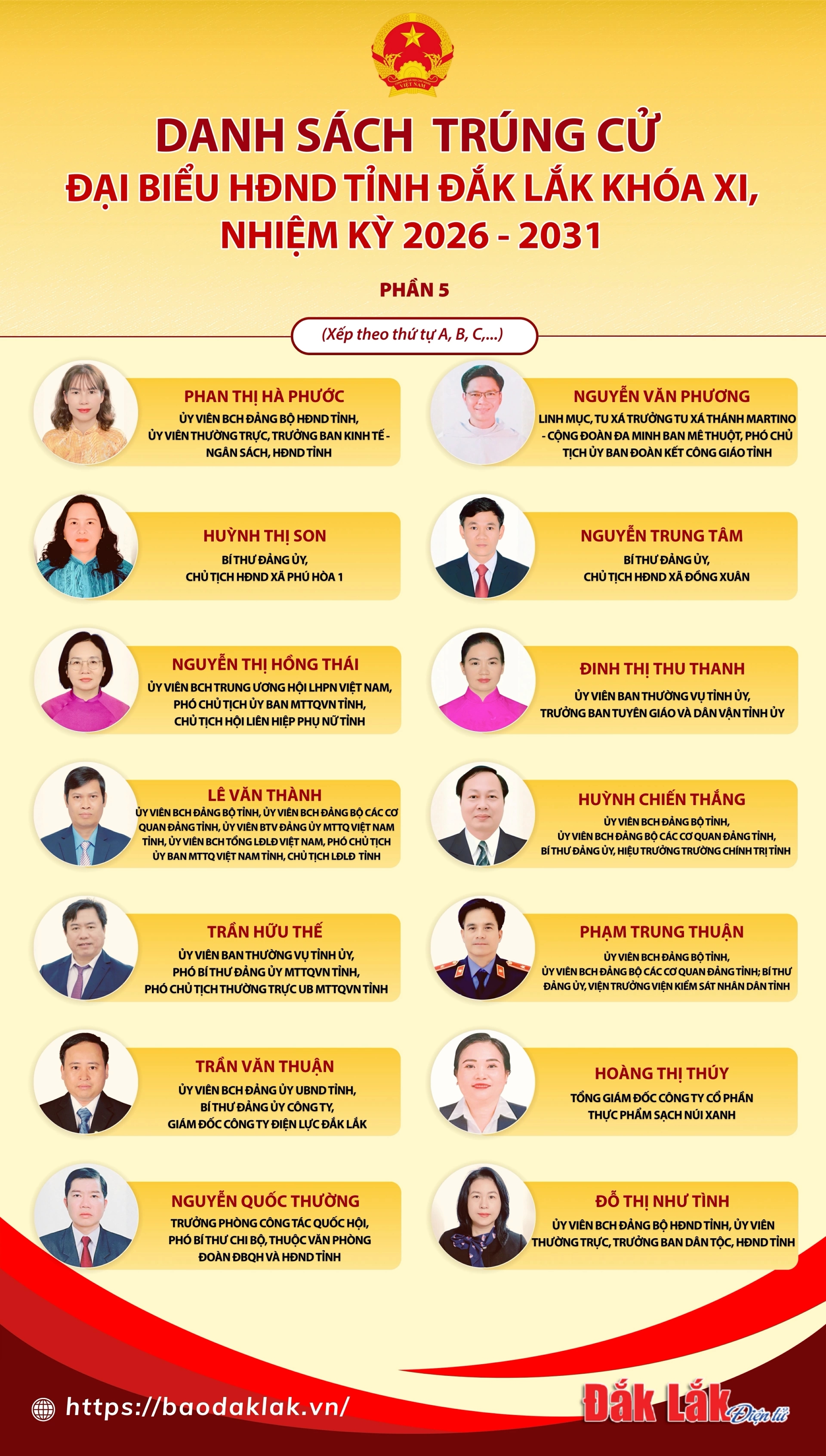 Đại biểu Hội đồng nhân dân tỉnh Đắk Lắk nhiệm kỳ 2026 - 2031