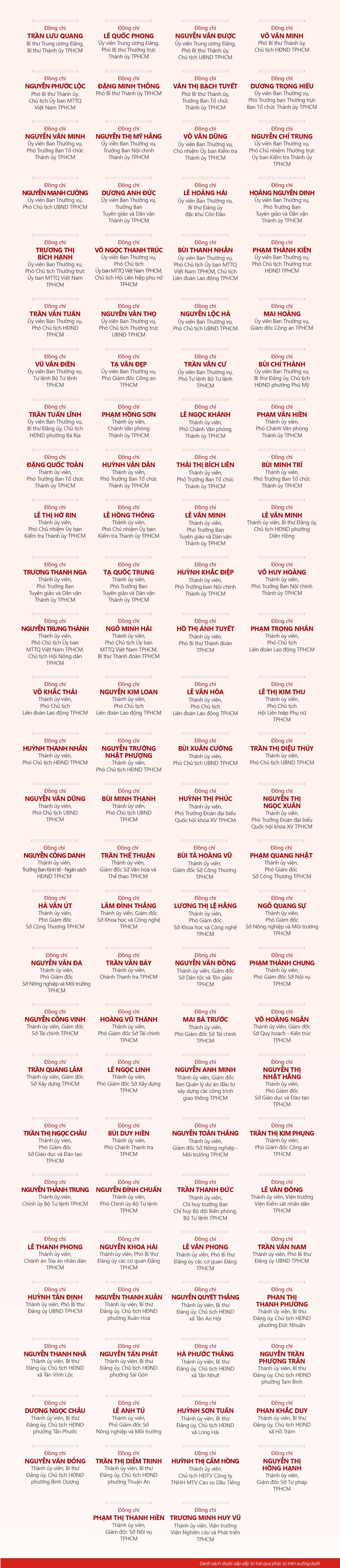 Danh sách Bí thư, Phó Bí thư Thành ủy TPHCM