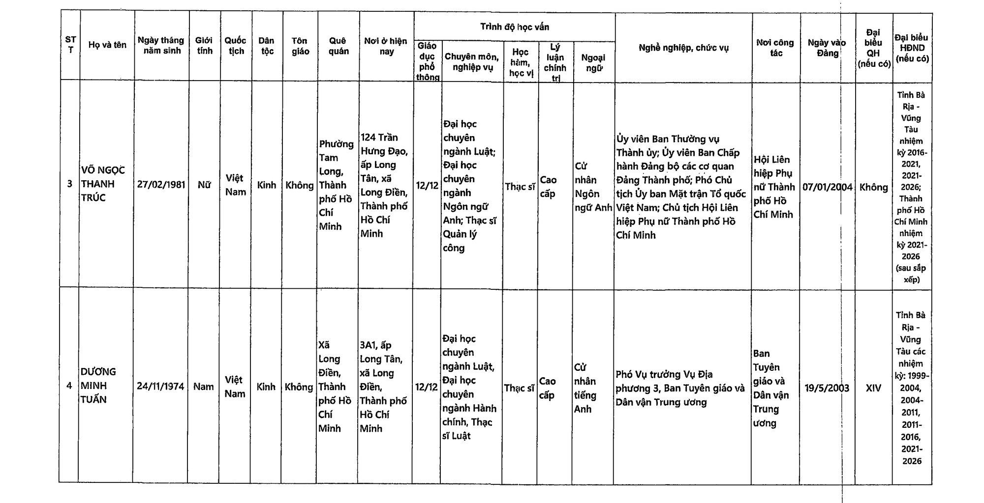 Đơn vị bầu cử số 4 gồm các phường Vũng Tàu, Tam Thắng, Rạch Dừa, Phước Thắng, Bà Rịa, Long Hương, Phú Mỹ, Tân Hải, Tân Phước, Tân Thành và các xã: Châu Pha, Châu Đức, Long Sơn
