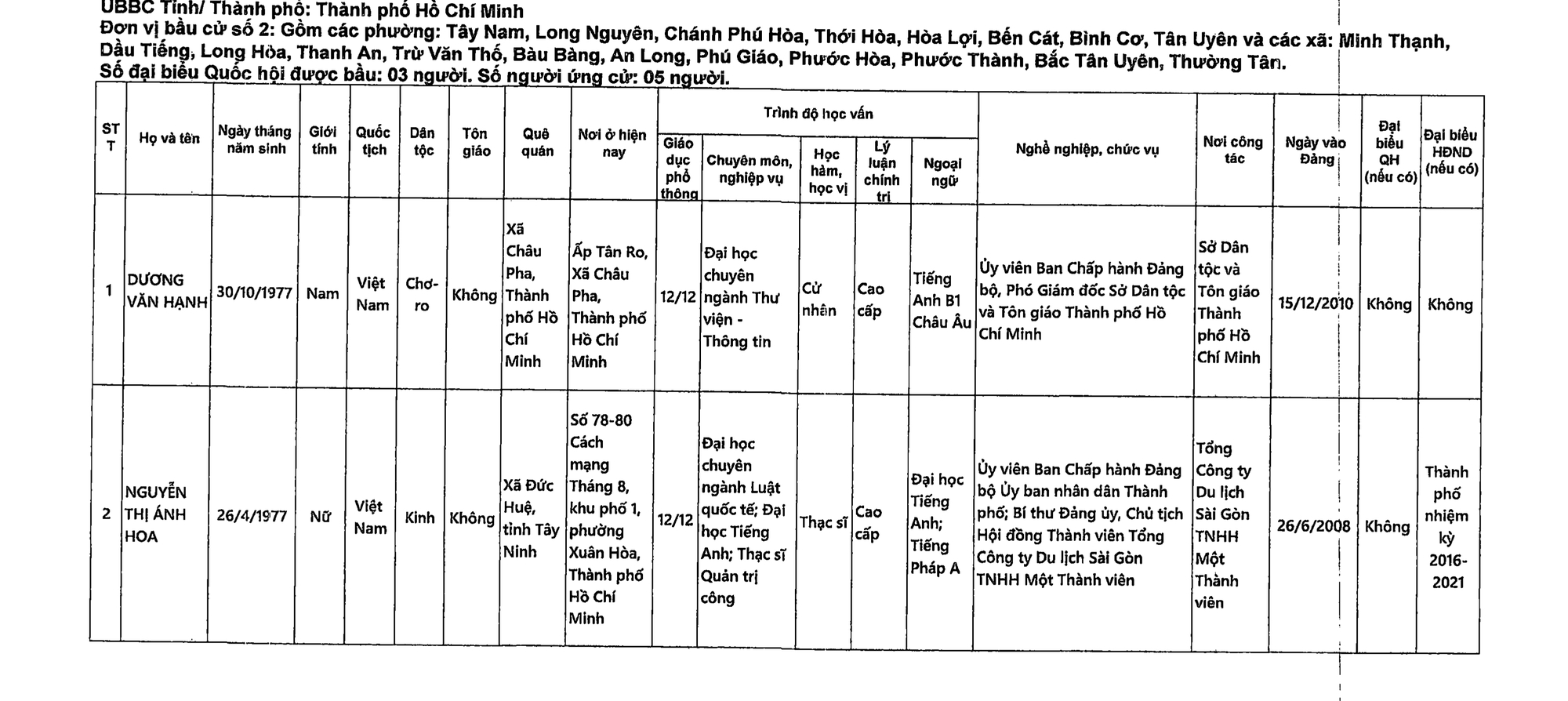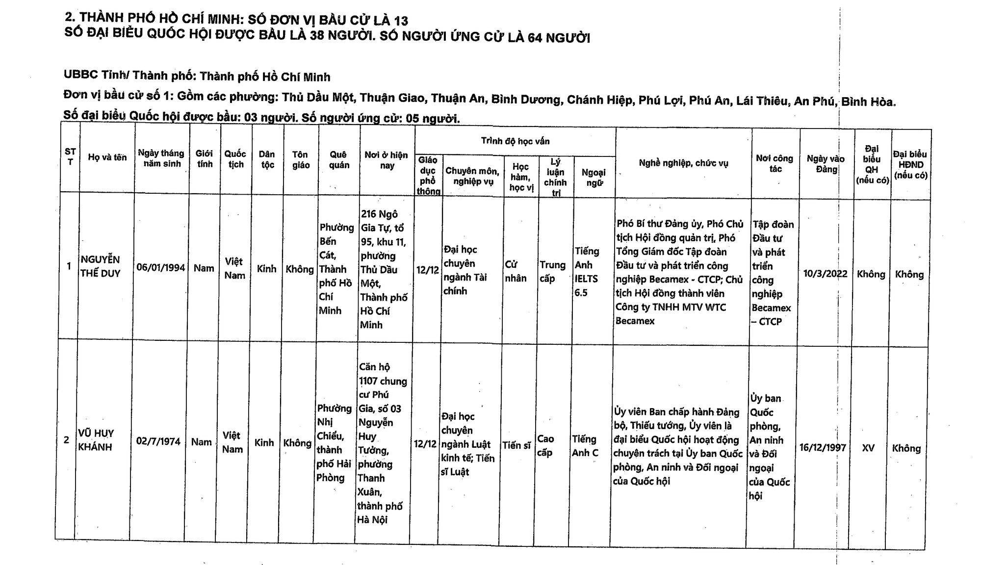 Đơn vị bầu cử số 2 gồm các phường: Tây Nam, Long Nguyên, Chánh Phú Hòa, Thới Hòa, Hòa Lợi, Bến Cát, Bình Cơ, Tân Uyên và các xã: Minh Thạnh, Dầu Tiếng, Long Hòa, Thanh An, Trừ Văn Thố, Bàu Bàng, An Long, Phú Giáo, Phước Hòa, Phước Thành, Bắc Tân Uyên, Thường Tân