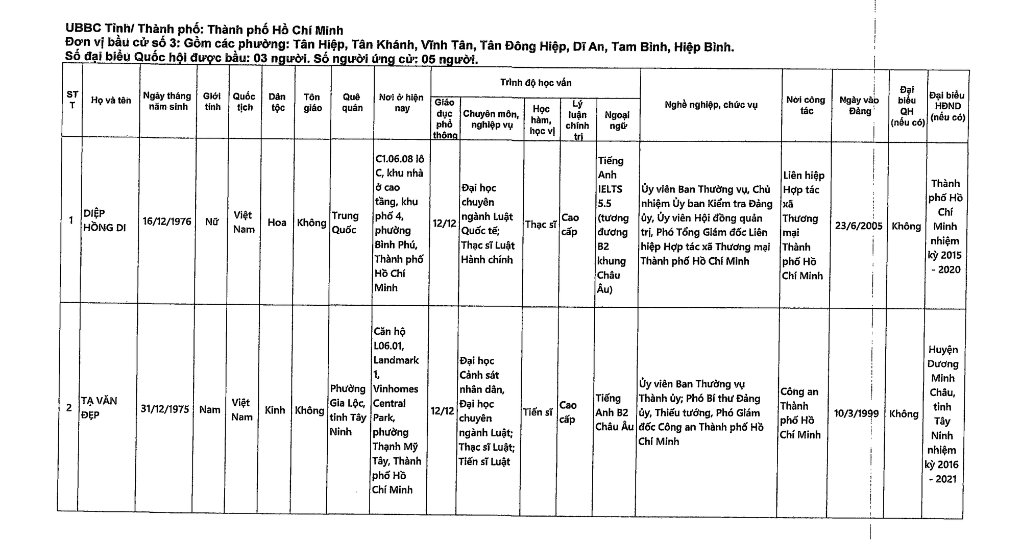 Đơn vị bầu cử số 3 gồm các phường Tân Hiệp, Tân Khánh, Vĩnh Tân, Tân Đông Hiệp, Dĩ An, Tam Bình, Hiệp Bình