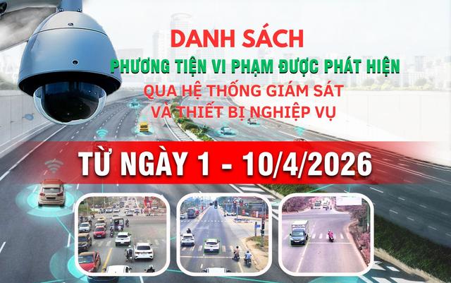 Danh sách phương tiện vi phạm giao thông được phát hiện qua hệ thống giám sát và thiết bị nghiệp vụ từ ngày 1-10/4/2026