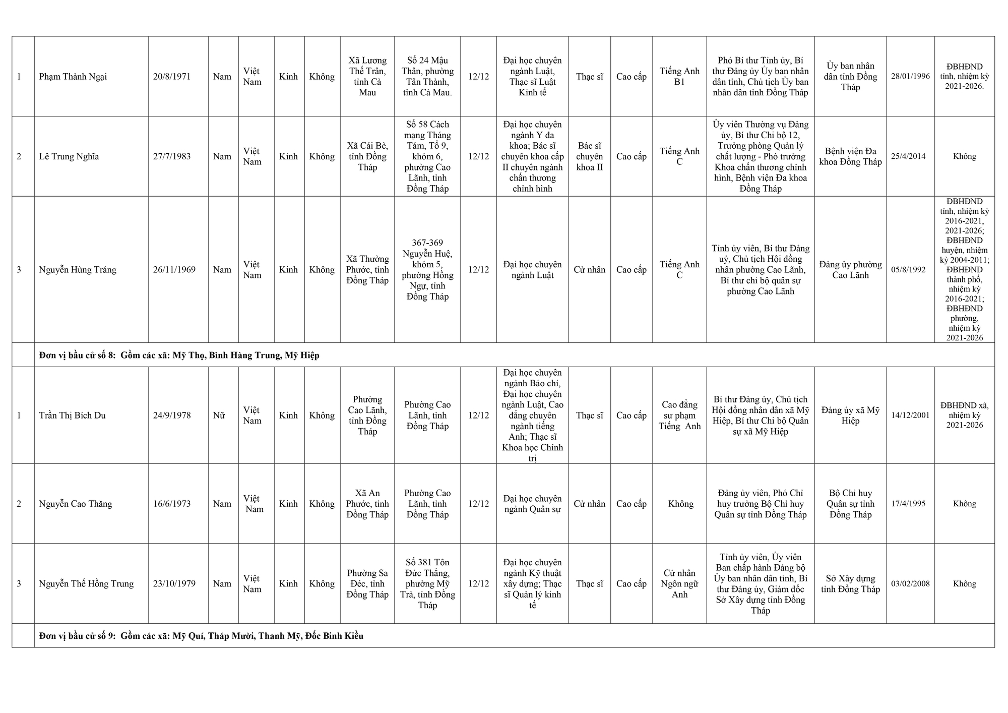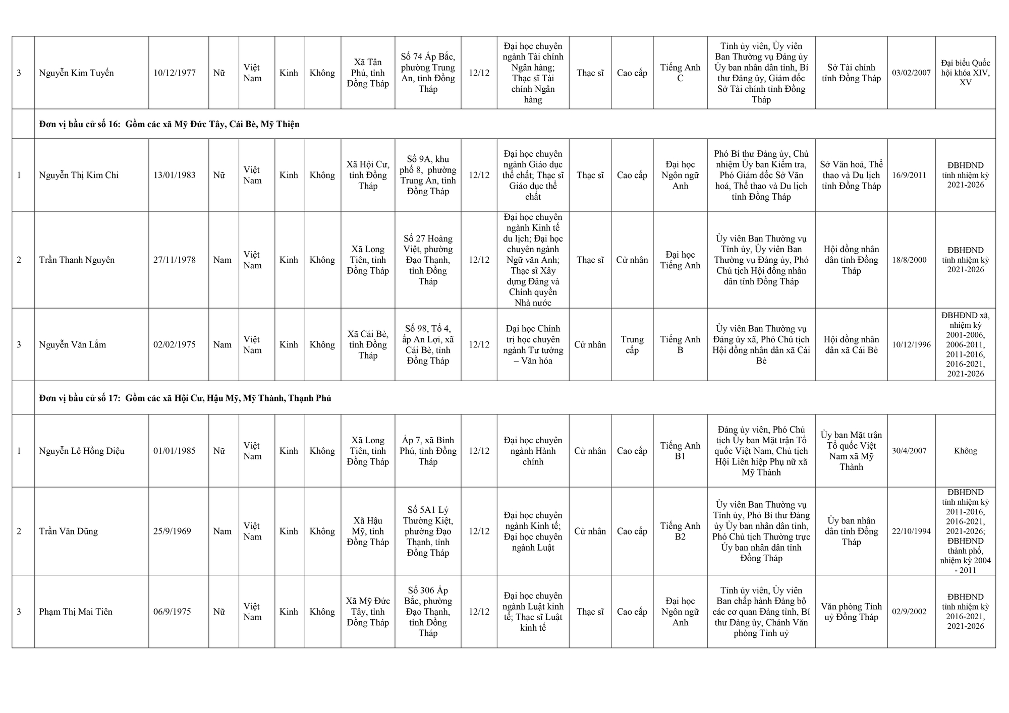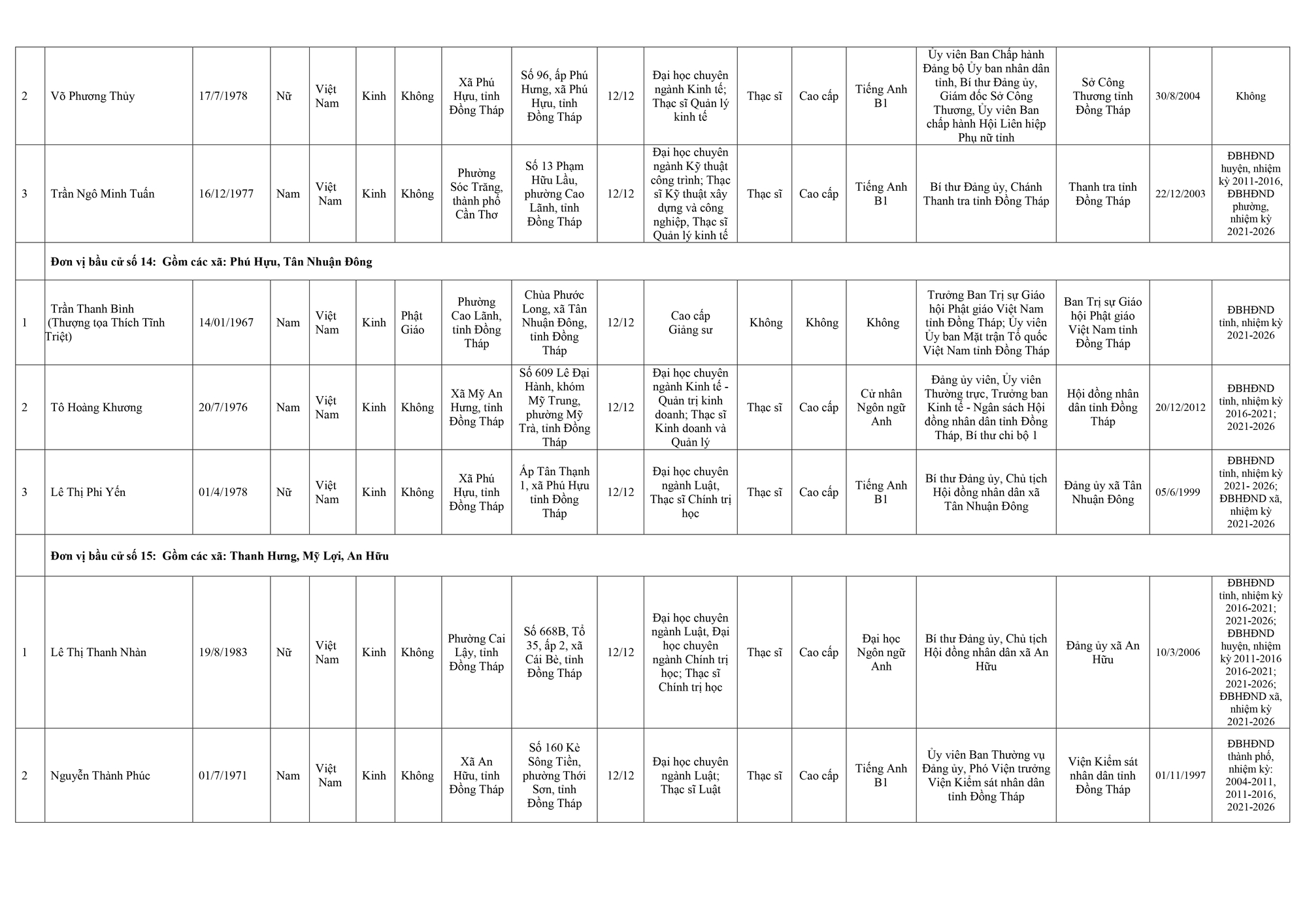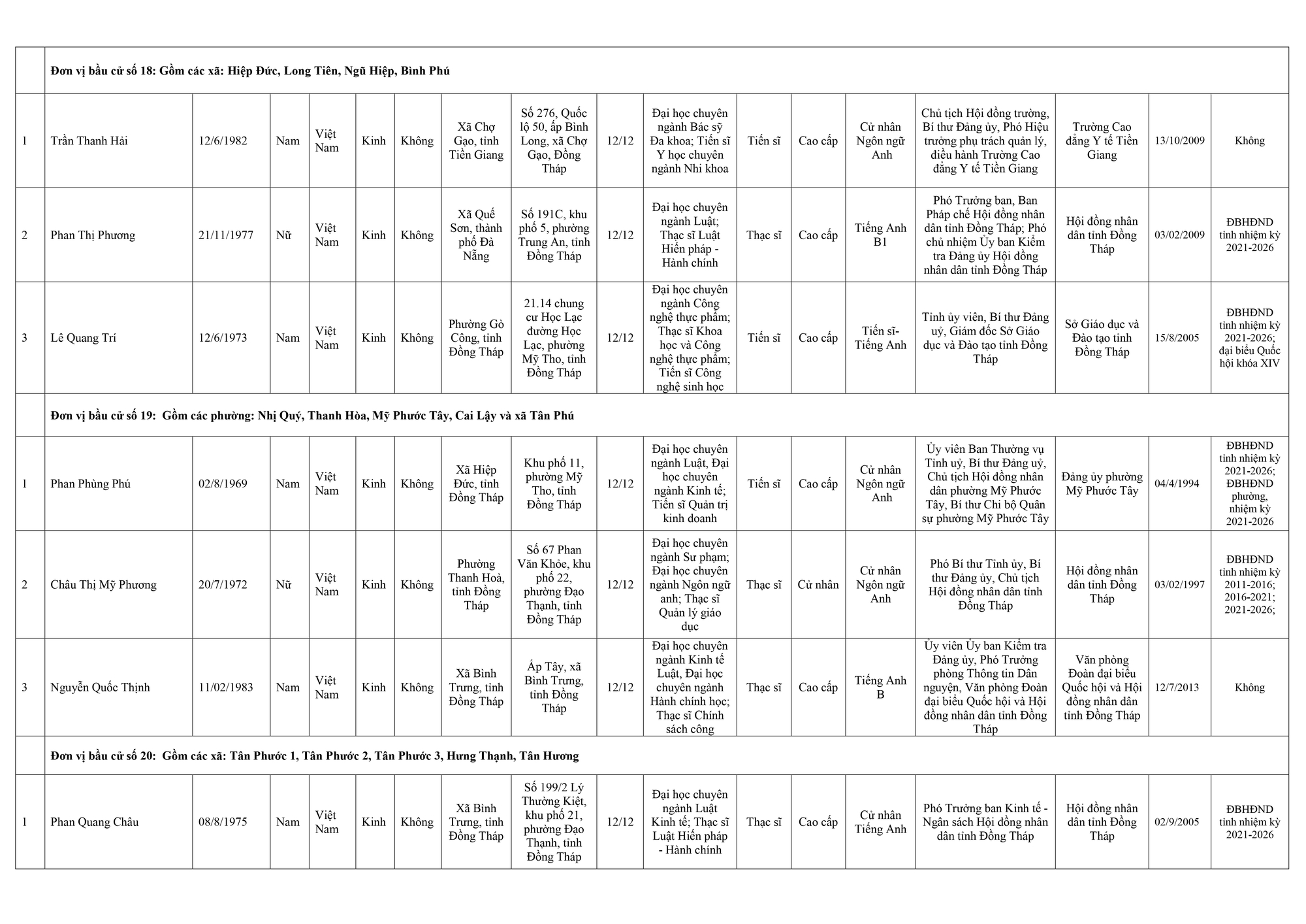 Dưới đây là danh sách những người trúng cử đại biểu Hội đồng nhân dân tỉnh Đồng Tháp:
