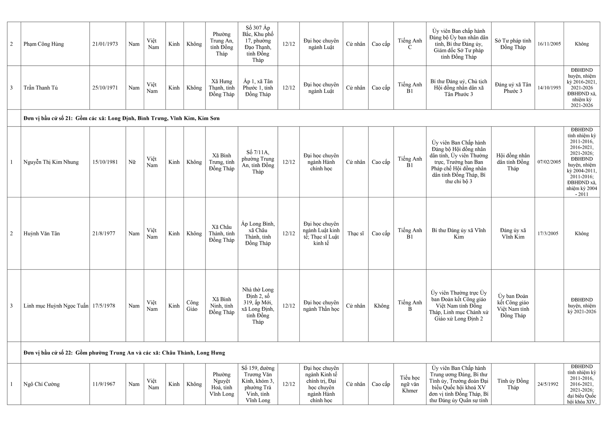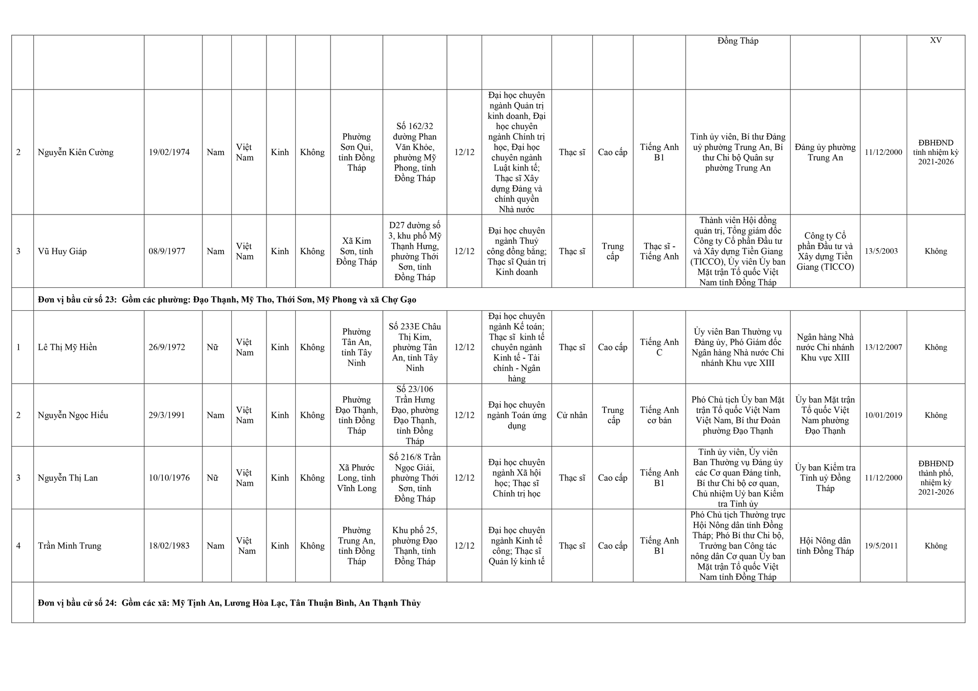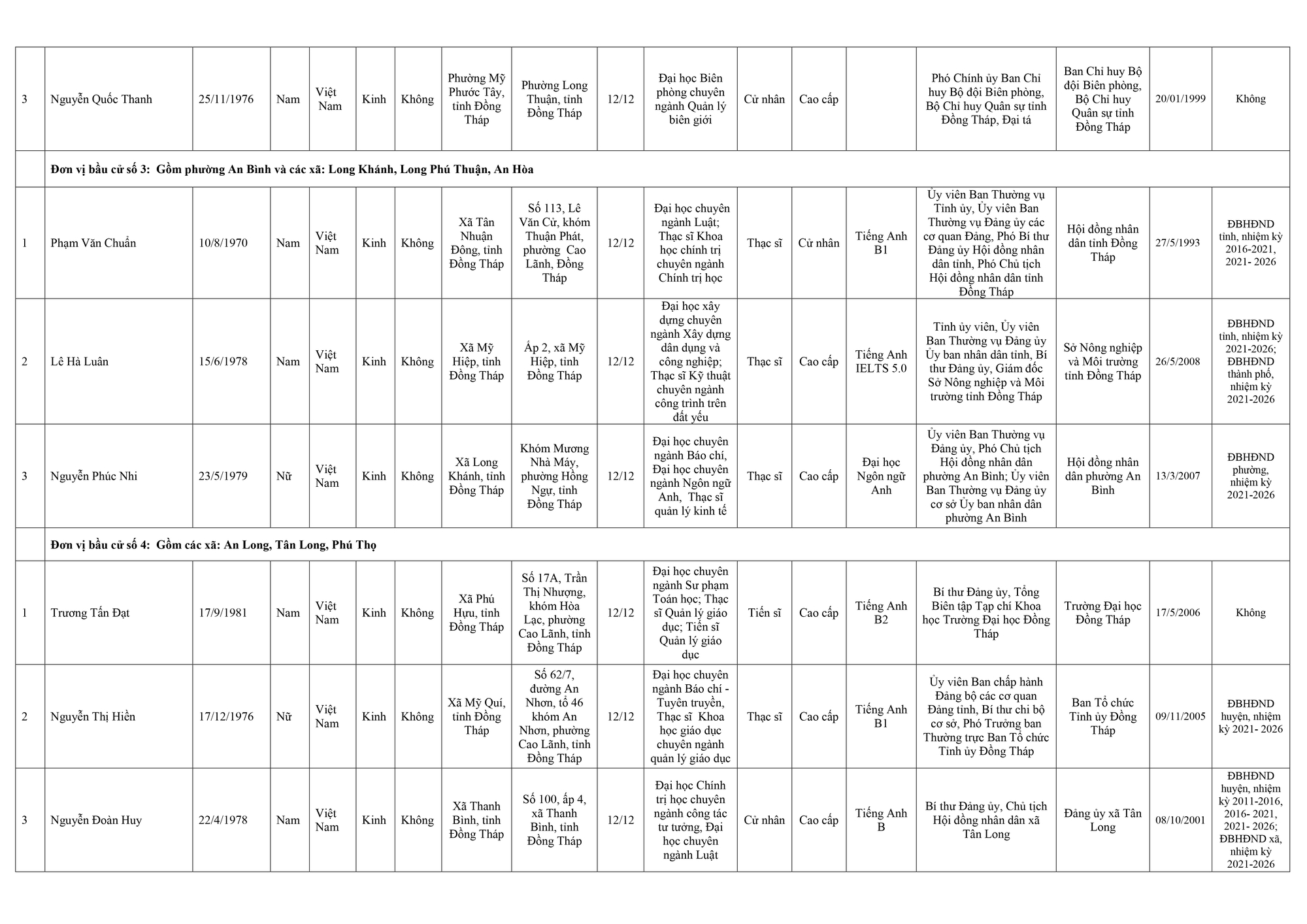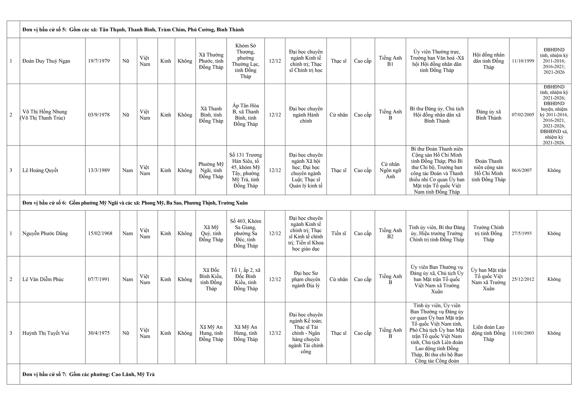 Dưới đây là danh sách những người trúng cử đại biểu Hội đồng nhân dân tỉnh Đồng Tháp: