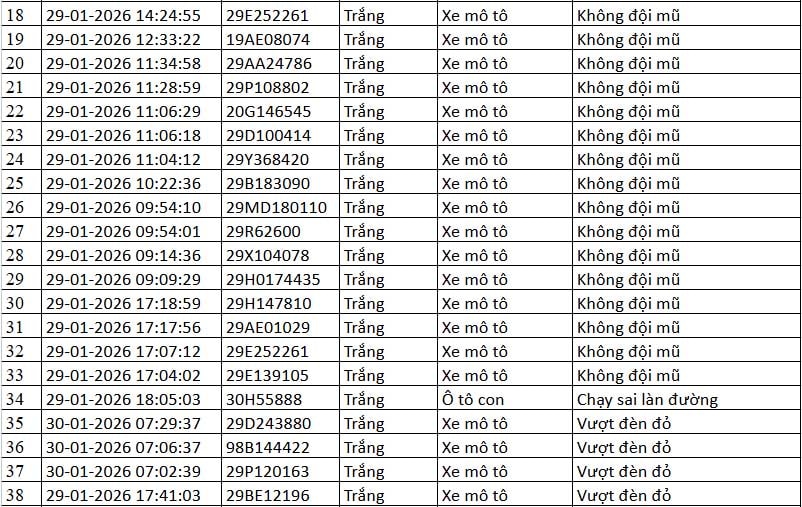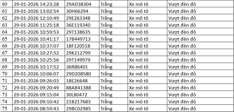 Thông tin từ Cục Cảnh sát giao thông (CSGT) - Bộ Công an cho hay, trong khoảng thời gian từ 12h ngày 29-1 đến 12h ngày 30-1, hệ thống camera ứng dụng trí tuệ nhân tạo (AI) do đơn vị này vận hành đã ghi nhận nhiều trường hợp vi phạm trật tự, an toàn giao thông trên địa bàn Hà Nội và tuyến cao tốc Nội Bài - Lào Cai.