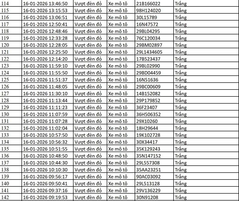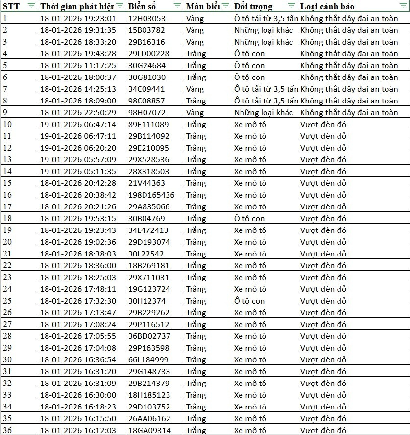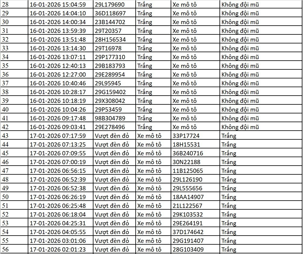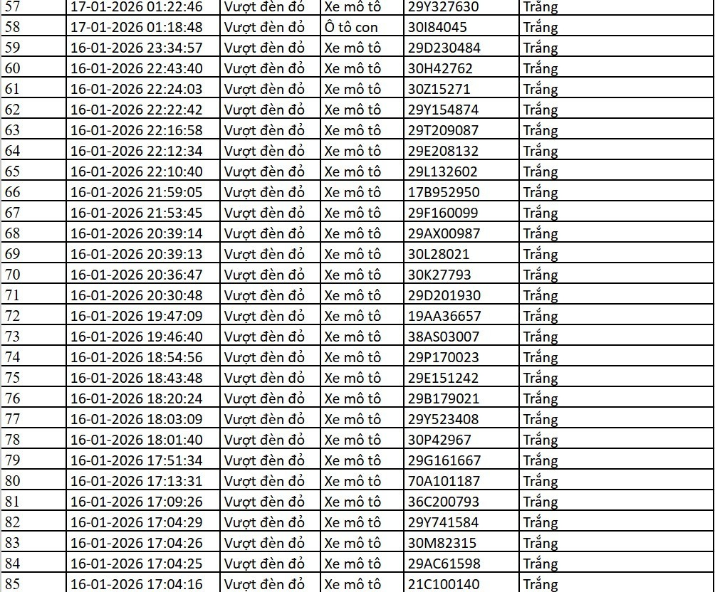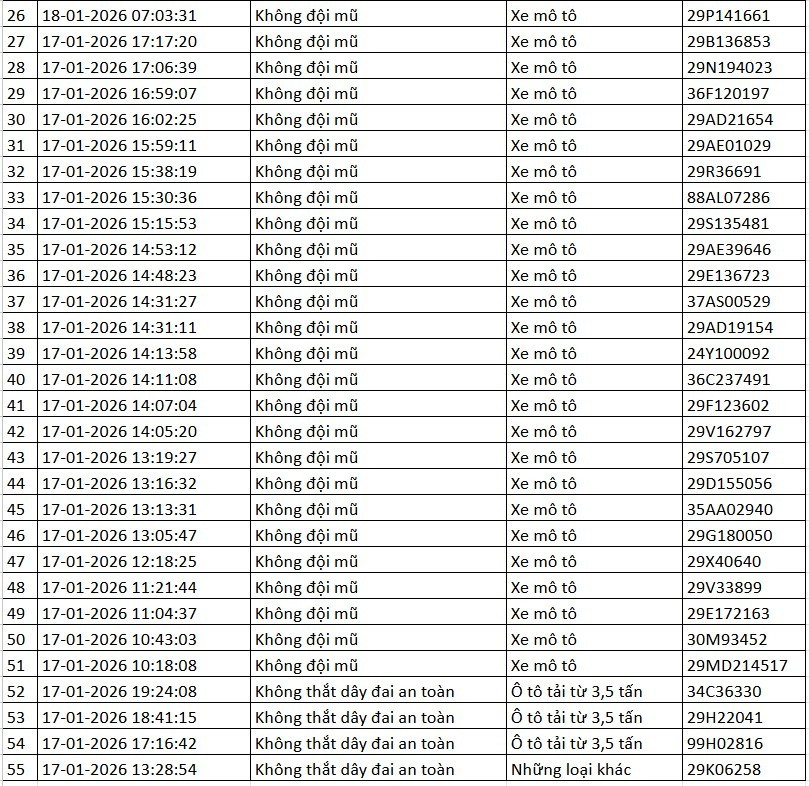 Dưới đây là danh sách phương tiện vi phạm do Cục CSGT công bố:
