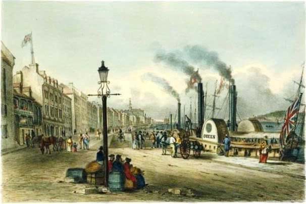 Khu vực Vieux-Port tại Montreál (tên gốc là Port de Montreál) là một trong những khu cảng lịch sử lâu đời nhất Bắc Mỹ, có nguồn gốc từ thế kỷ XVII và gắn liền với chính quá trình khai sinh, phát triển của thành phố. Trong ảnh là tranh vẽ khung cảnh Port de Montreál năm 1841 và 1843. Nguồn: Ville de Montreál
