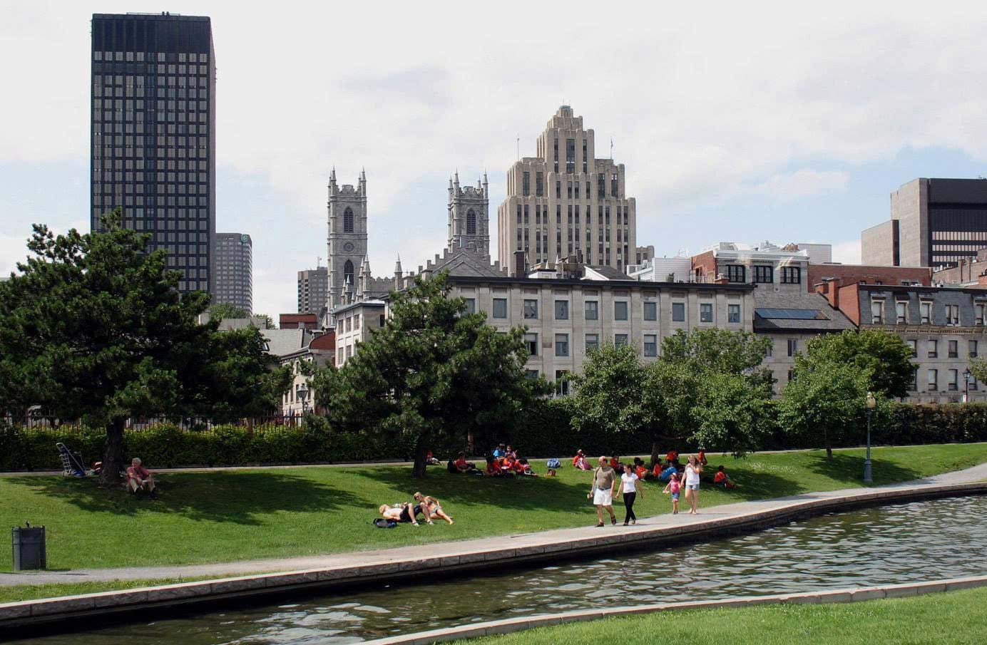 Cách thức sử dụng Linh hoạt chức năng theo mùa tại Vieux-Port thể hiện rõ nét qua khả năng thích ứng linh hoạt của không gian. Các khu vực được thiết kế để vận hành tối ưu quanh năm. Trong ảnh là khu vực Bassin Bonsecours và mùa hè và khi mùa đông đến khu vực này trở thành sân trượt băng rộng lớn. Nguồn: Ville de Montreál