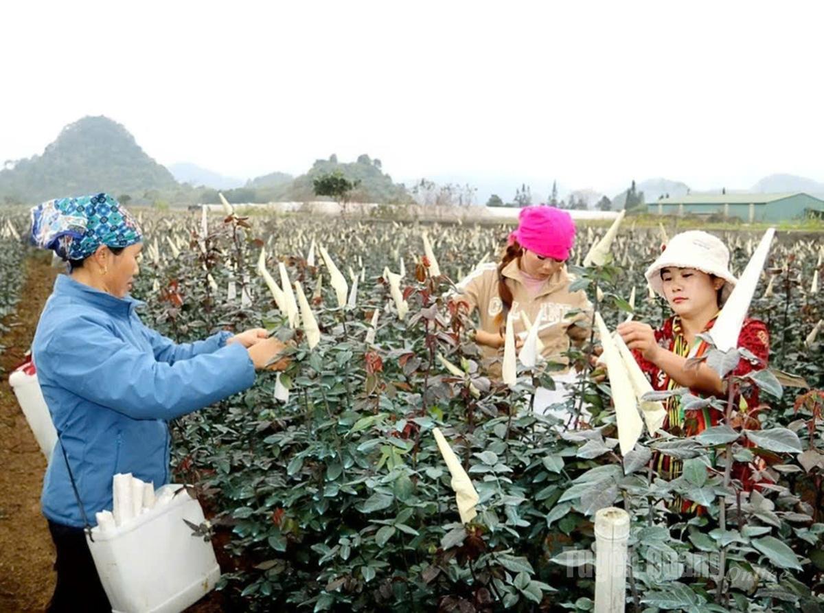 Trên rẻo cao Bó Lách, xã Quản Bạ, hơn 1,5 ha hoa hồng của gia đình anh Nhữ Việt Bắc đang kết tinh hương sắc từ chính sự khắc nghiệt của thời tiết. Anh Bắc ví việc trồng hoa như một “bài toán thích ứng” với sương muối và rét đậm, đòi hỏi sự tính toán chuẩn xác trong từng nhịp cắt tỉa, tưới tiêu. Nhờ kiểm soát chặt từng khâu kỹ thuật, vườn hồng Pháp và hoa màu cờ của gia đình anh Bắc vẫn giữ sản lượng ổn định 120 nghìn bông mỗi tháng, đủ cung ứng ra thị trường và tăng tốc cho mùa cao điểm Tết.