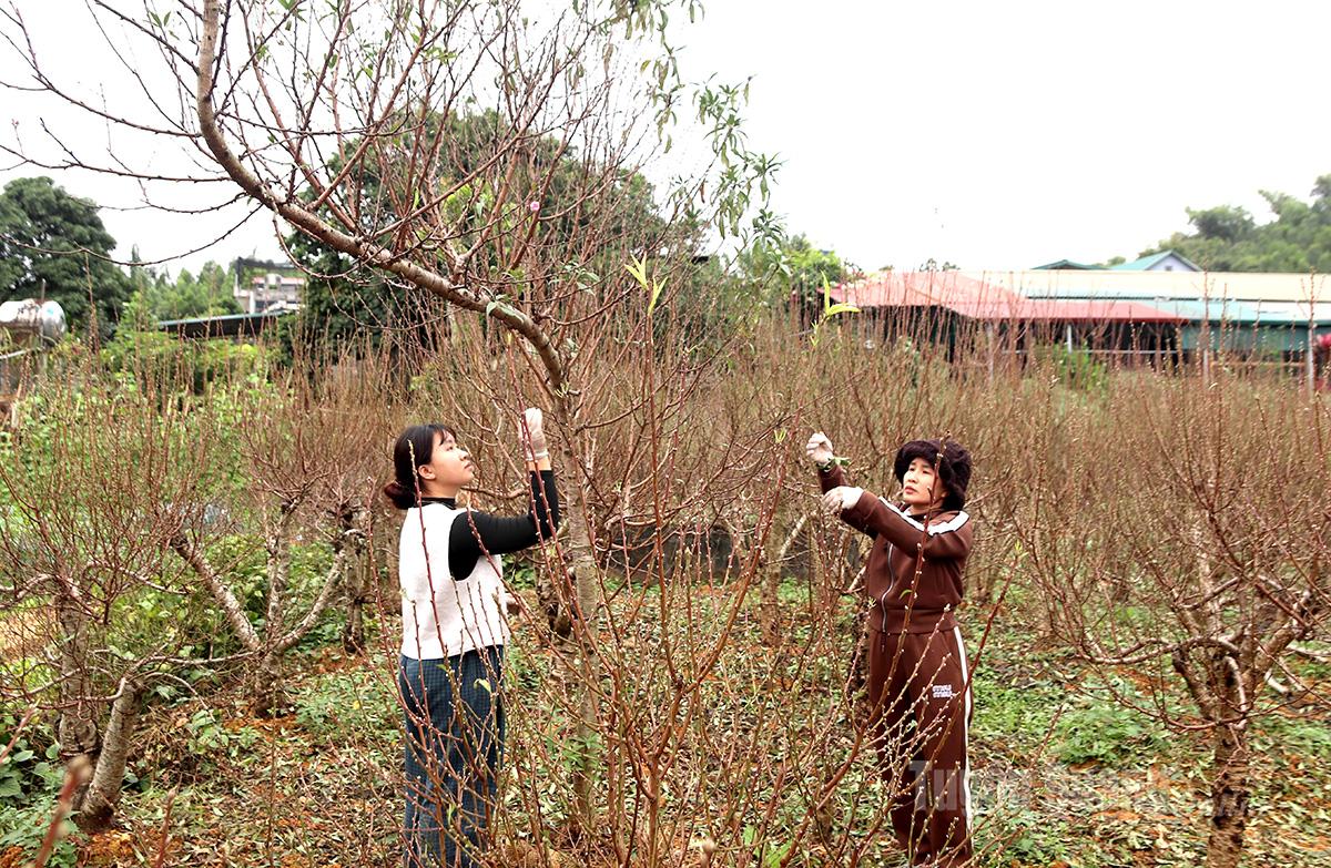 Người dân tổ dân phố 9, phường Nông Tiến chăm sóc đào vụ Tết.