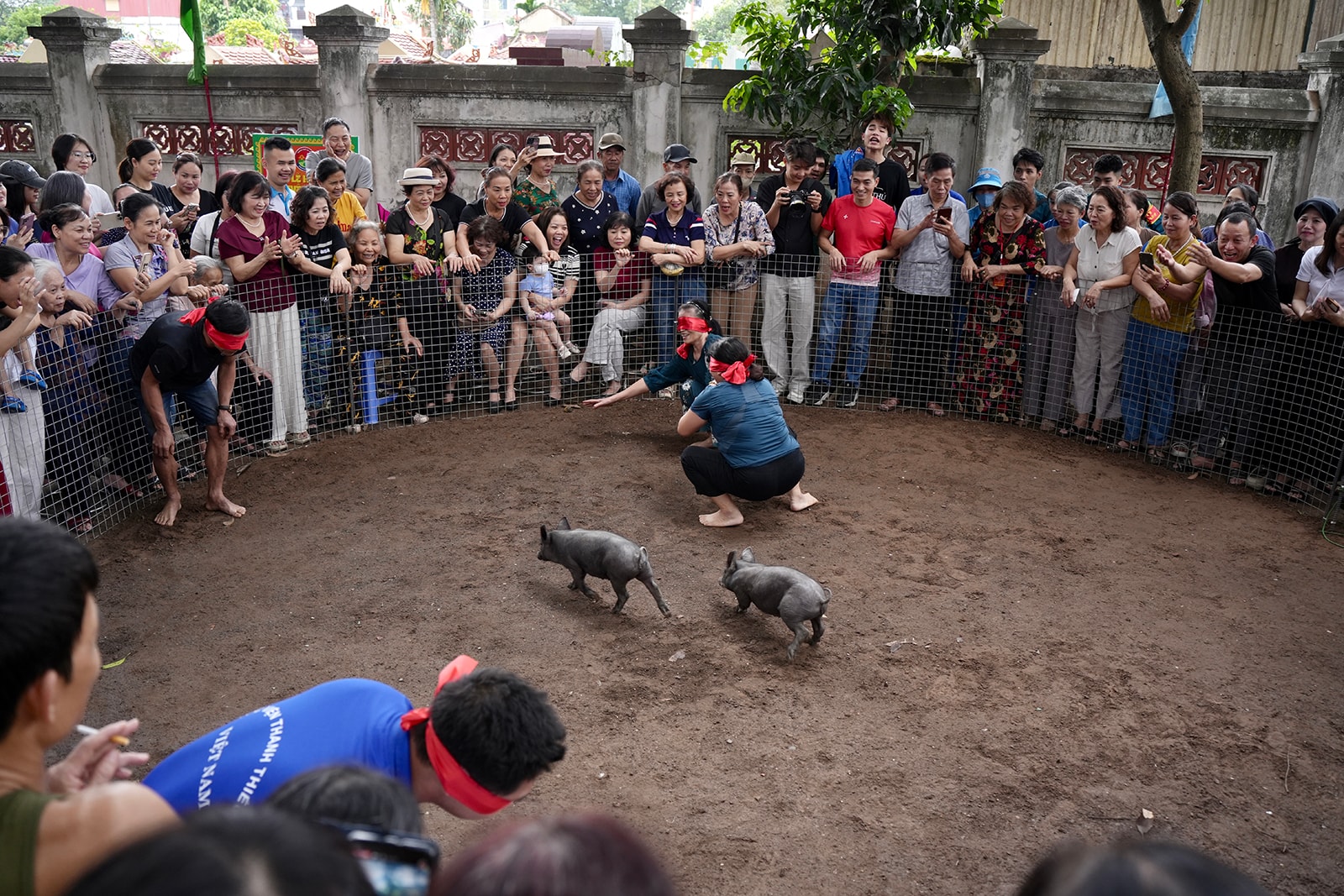 Các trò chơi dân gian thu hút rất đông người dân tham gia và cổ vũ. Ảnh: Phạm Mạnh