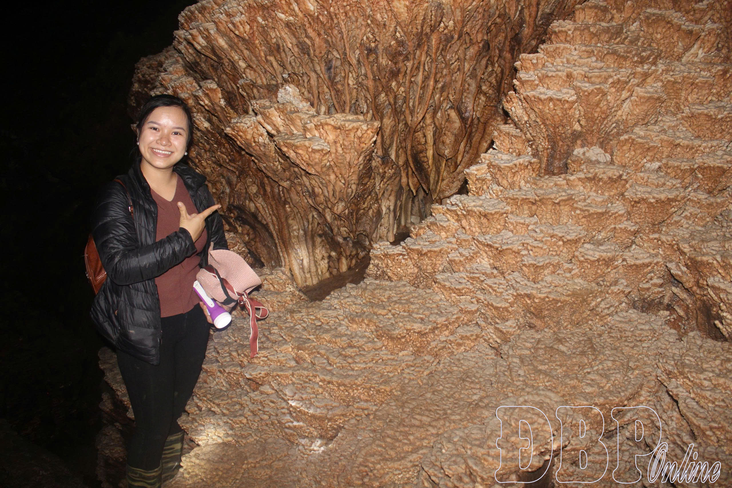 Du khách thích thú khám phá hang động Pê Răng Ky.