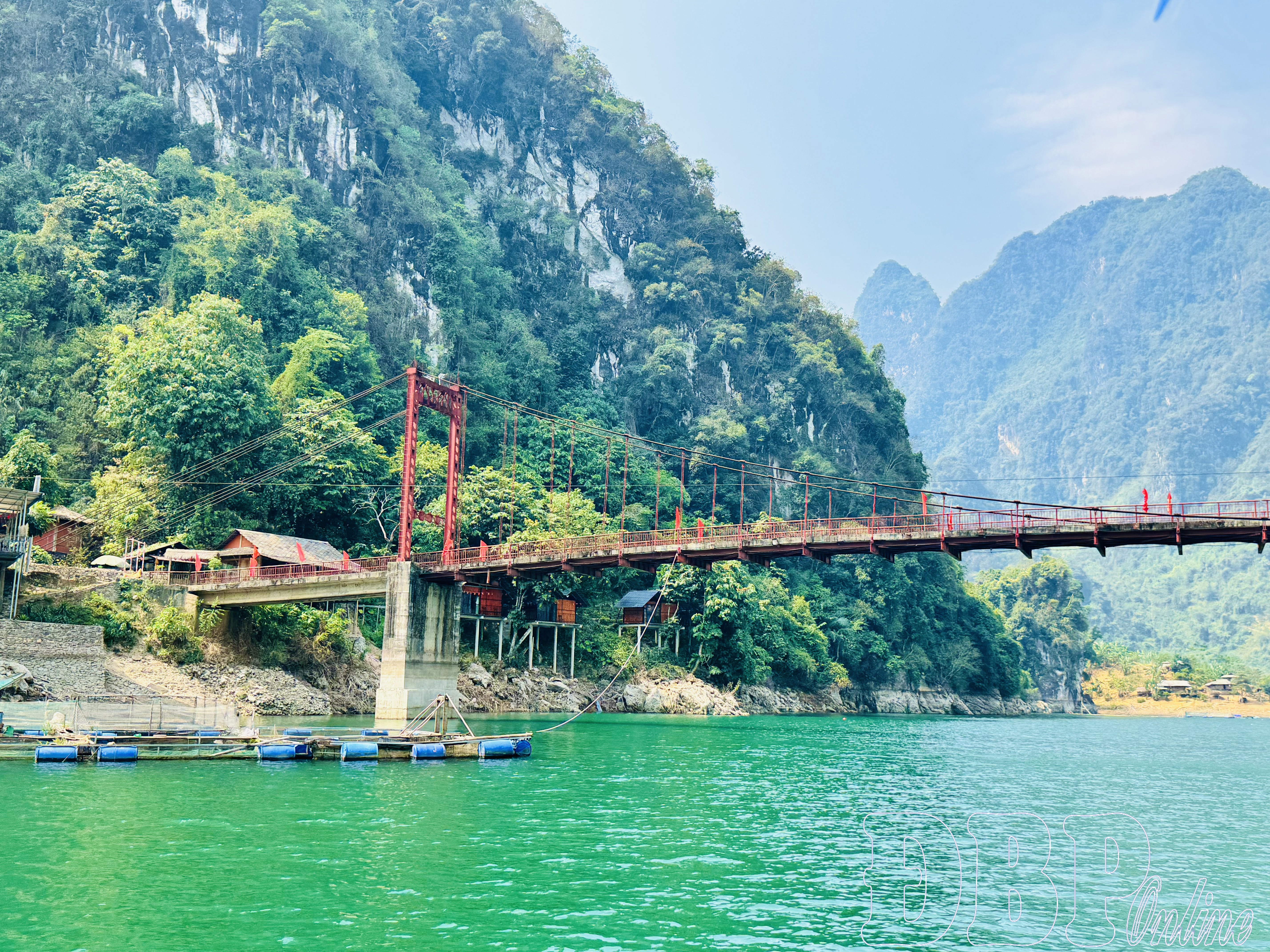 Chiếc thuyền của anh Tẩn A Dềnh lướt nhẹ nhàng trên mặt hồ phẳng lặng mở ra không gian rộng lớn. Những dãy núi đá hai bên tạo thành các hình thù kỳ lạ, tạo nên bức tranh thủy mặc, núi soi mặt hồ. Thuyền đến gần khu vực cầu Pa Phông, cảnh sắc trở nên mềm mại hơn. Dòng nước uốn lượn, tạo thành đường cong duyên dáng. Ngồi giữa không gian ấy, ta dễ dàng cảm nhận được sự giao hòa giữa thiên nhiên – nơi mà từng chuyển động đều chậm lại, nhẹ nhàng và sâu lắng.