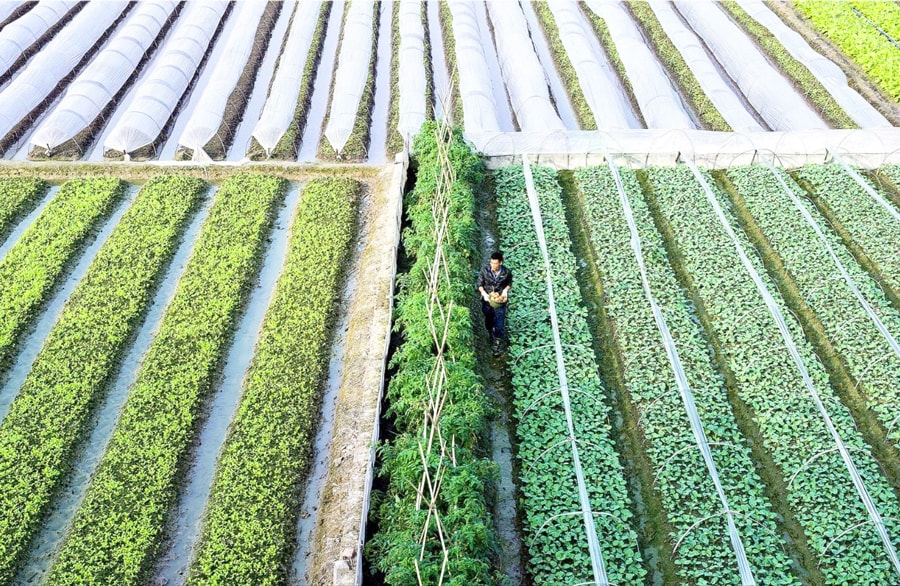 Mô hình trồng rau chất lượng cao tại vùng đất bãi ven sông của xã Phúc Thịnh.
