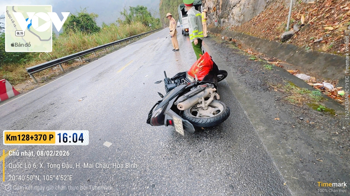 Cụ thể, vào khoảng 14h52 phút ngày 8/2 tại km128+ 350 Ql6, thuộc địa phận xóm Đậu, xã Mai Châu, tỉnh Phú Thọ xảy ra vụ tai nạn giao thông đường bộ giữa xe ôtô biển kiểm soát 15C- 461.xx do anh Nguyễn Bá T., sinh năm 1981, trú tại tổ 6, phường Trần Thành Ngọ, thành phố Hải Phòng lưu thông hướng Sơn La - Hà Nội điều khiển.
