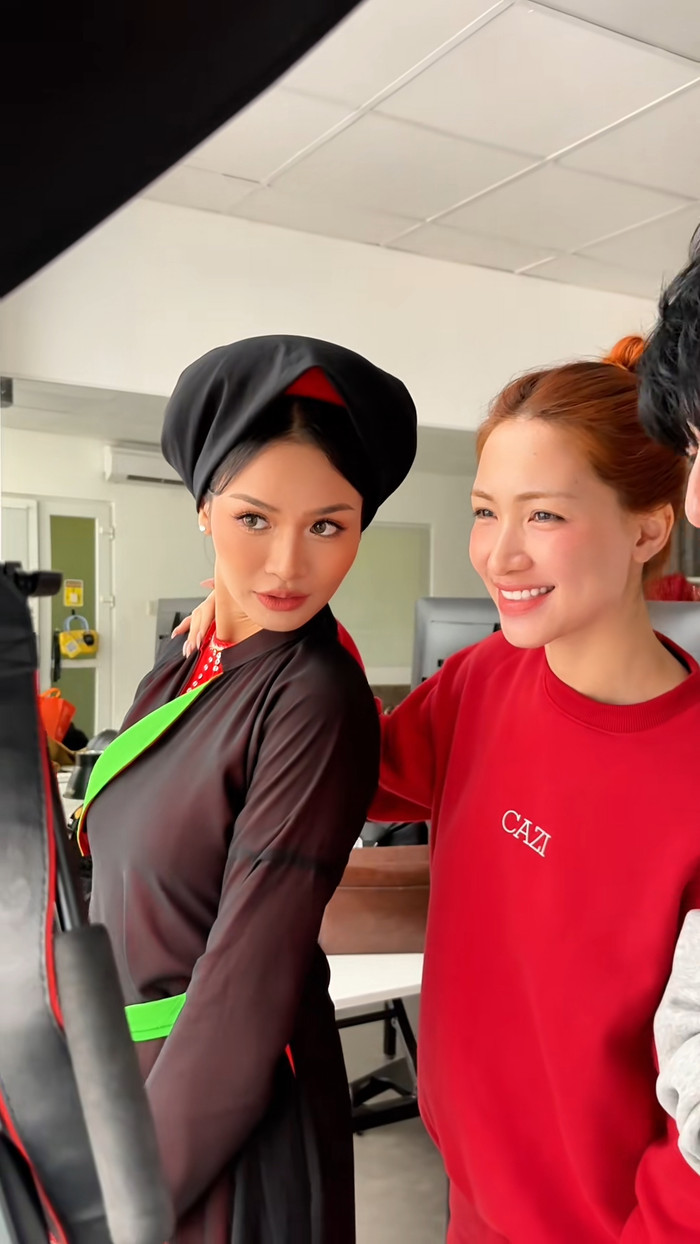 Hòa Minzy và Mook thể hiện sự thân thiết trong một lần cùng nhau làm việc. Ảnh: misscosmo.unimedia