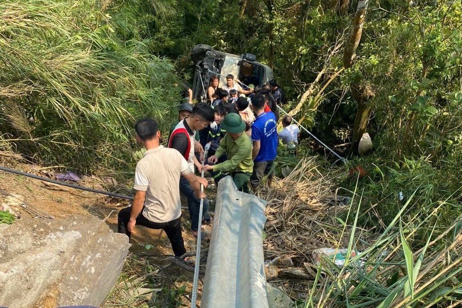 Tại hiện trường, do địa hình taluy dốc đứng, thời tiết mưa ẩm nên mặt đường trơn trượt, phương tiện bị lật và biến dạng nên công tác tiếp cận gặp nhiều khó khăn.