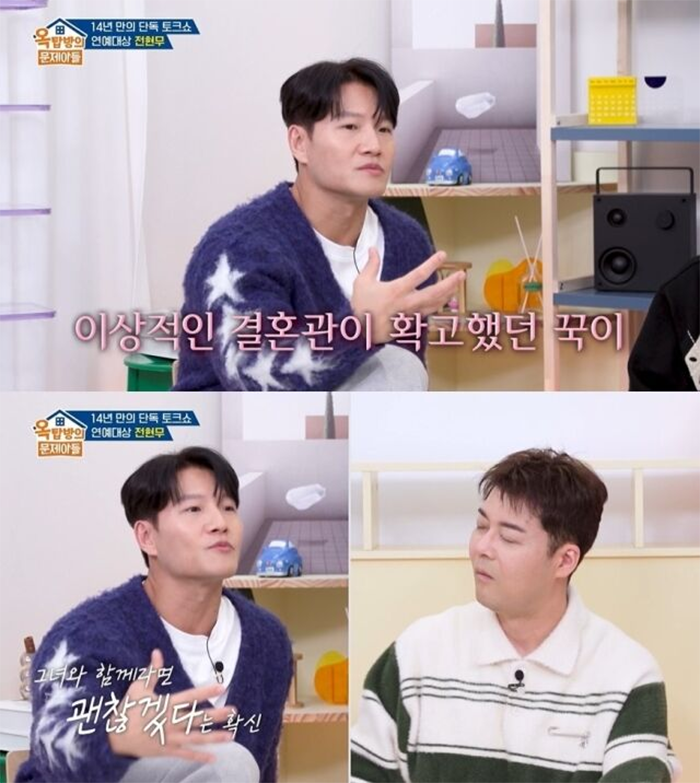 Khi Jun Hyun Moo tiếp tục gợi mở về việc Kim Jong Kook và vợ vốn quen biết từ trước, đặt câu hỏi liệu cô có từng chỉ là “bạn khác giới thân thiết”, Kim Jong Kook đã thẳng thắn làm rõ: “Cô ấy là một người em quen biết. Nhưng đến một thời điểm, tôi nghĩ rằng nếu kết hôn với người này thì mình sẽ rất hạnh phúc”.
