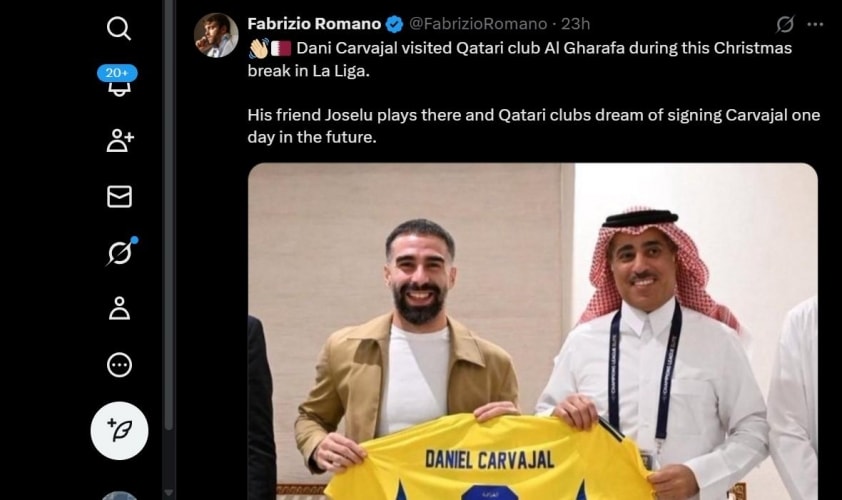Thông tin về tương lai của Carvajal không còn dừng lại ở mức đồn đoán. Chuyên gia chuyển nhượng Fabrizio Romano mới đây đã khẳng định bóng đá Qatar đã chọn Carvajal là mục tiêu chuyển nhượng ưu tiên hàng đầu. Chuyến đi gần đây của anh tới quốc gia này không đơn thuần là nghỉ dưỡng, mà được giới chuyên môn đánh giá là một bước thăm dò thực tế cho tương lai sắp tới.