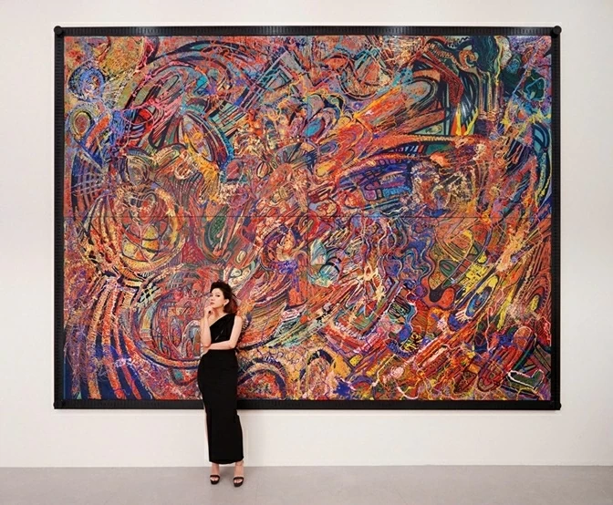 Cấu trúc siêu thực, các lớp màu sơn mài rực rỡ, dày, sâu tạo nên một thế giới vừa quyến rũ vừa bất an, nơi vẻ đẹp của sự sống song hành với nỗi ám ảnh về công nghệ. Ở kích thước ấy, tranh của CAT không chỉ để nhìn mà như một không gian để người xem có thể bước vào.