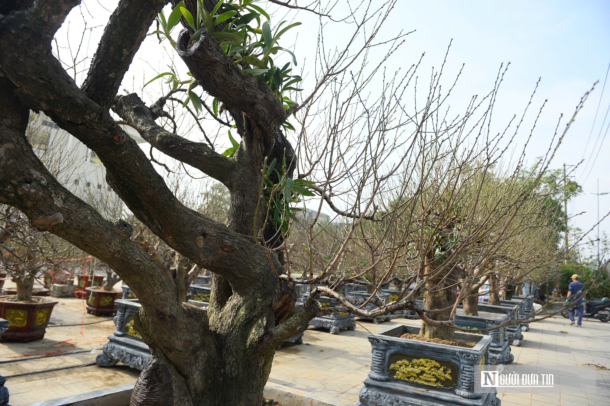 Những ngày giáp Tết Nguyên đán, không khí xuân đã bắt đầu lan tỏa trên nhiều tuyến phố phường Hạc Thành (Thanh Hóa). Dọc các con đường lớn, đào cảnh được bày kín vỉa hè, tạo nên khung cảnh nhộn nhịp quen thuộc mỗi dịp cuối năm. Giữa muôn sắc đào truyền thống, sự xuất hiện của những gốc đào cổ thụ kích thước lớn nhanh chóng trở thành tâm điểm chú ý của người dân và giới chơi cây cảnh.