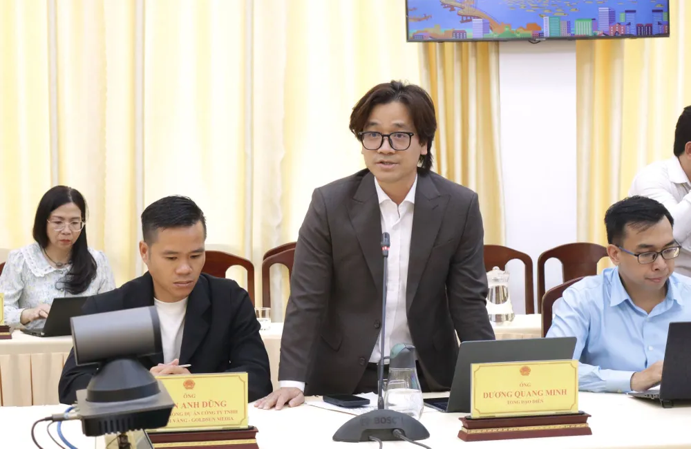 Đạo diễn Dương Quang Minh thông tin về kịch bản đêm khai mạc. Ảnh: NHẪN NAM