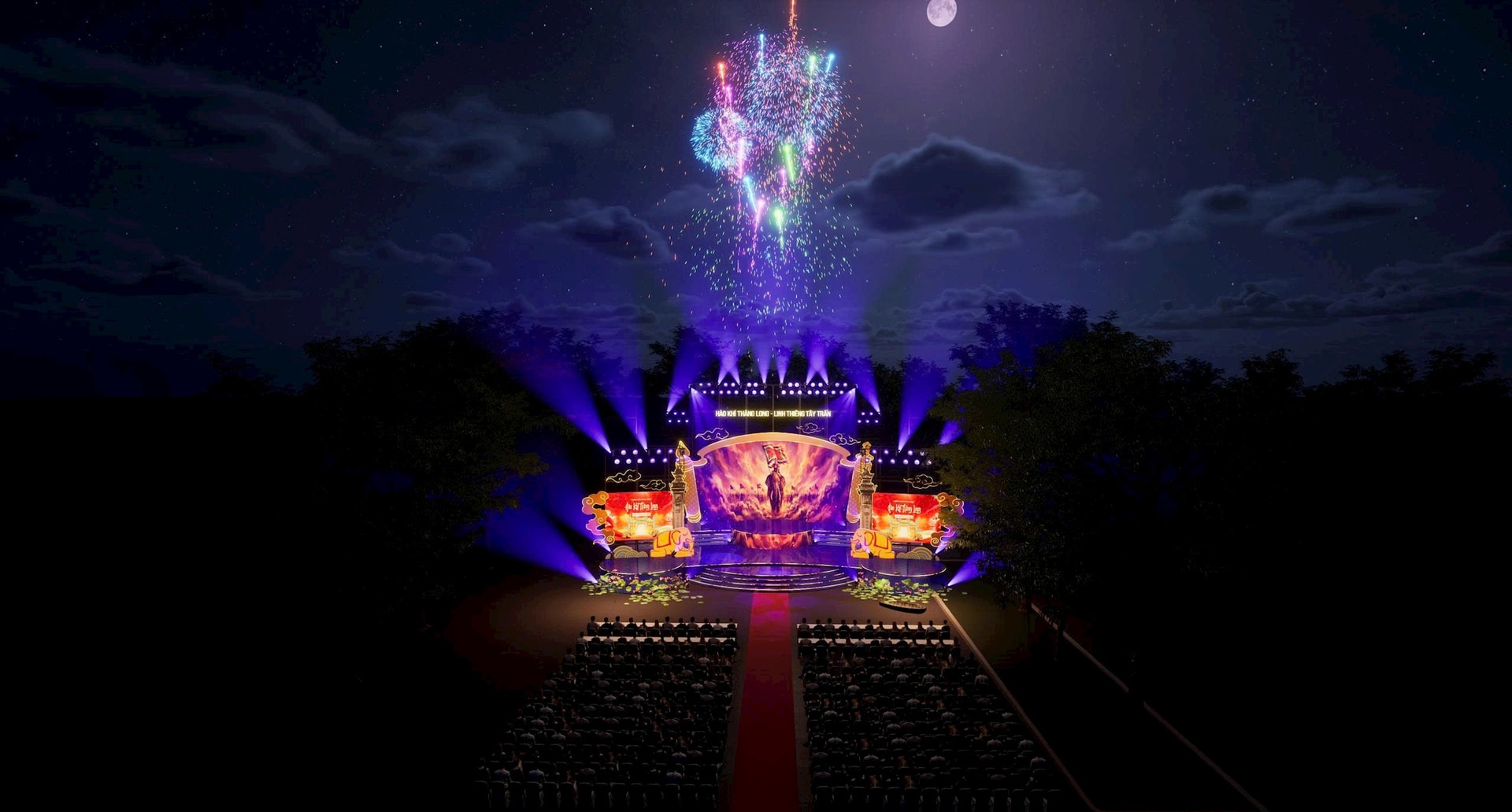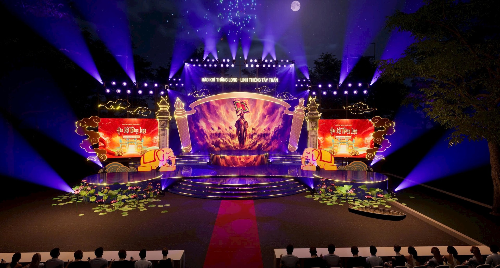 Phối cảnh sân khấu chương trình nghệ thuật đặc biệt “Hào khí Thăng Long - Linh thiêng Tây Trấn”