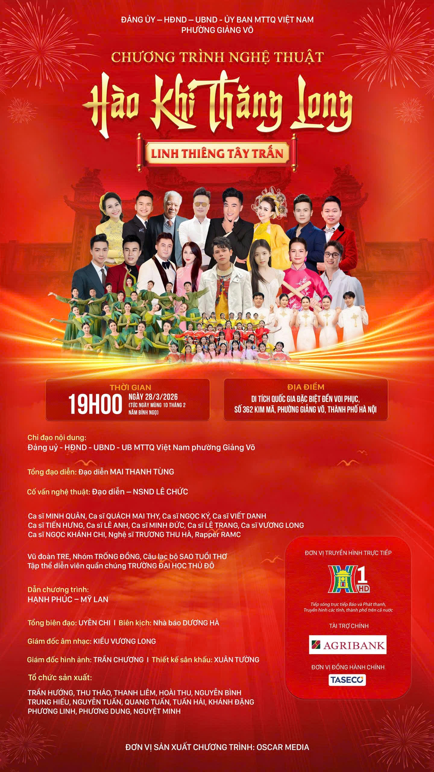 Chương trình diễn ra vào 20h10 ngày 28-3-2026, tại không gian linh thiêng của ngôi đền trấn phía Tây kinh thành Thăng Long xưa, thờ Đức Thánh Linh Lang Đại Vương – vị anh hùng có công lớn trong sự nghiệp bảo vệ đất nước.