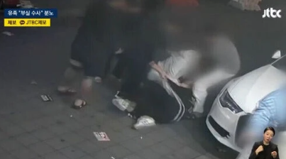 CCTV ghi lại cảnh nam đạo diễn bị hành hung tập thể. Ảnh: JTBC.