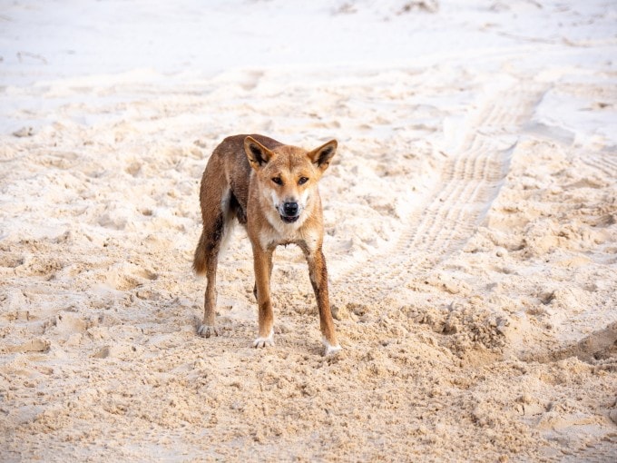 Một con chó dingo hoang dã xuất hiện trên đảo K'gari.
