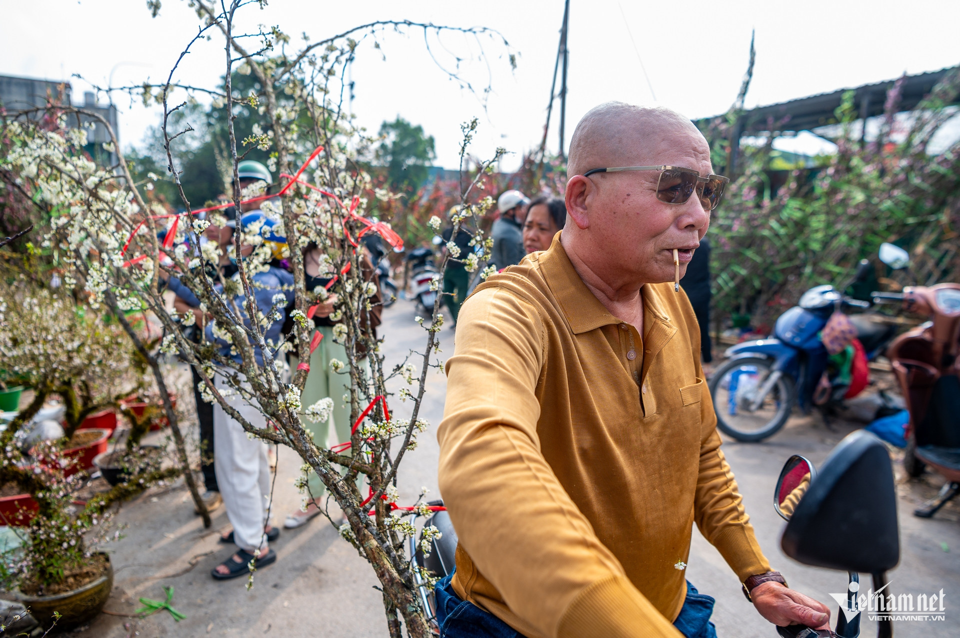 "Nhà tôi bán đào với mai, do thời tiết năm nay nóng quá hoa nở sớm rất khó bán, chỉ mong thu hồi được vốn là mừng rồi", ông Toàn nói.