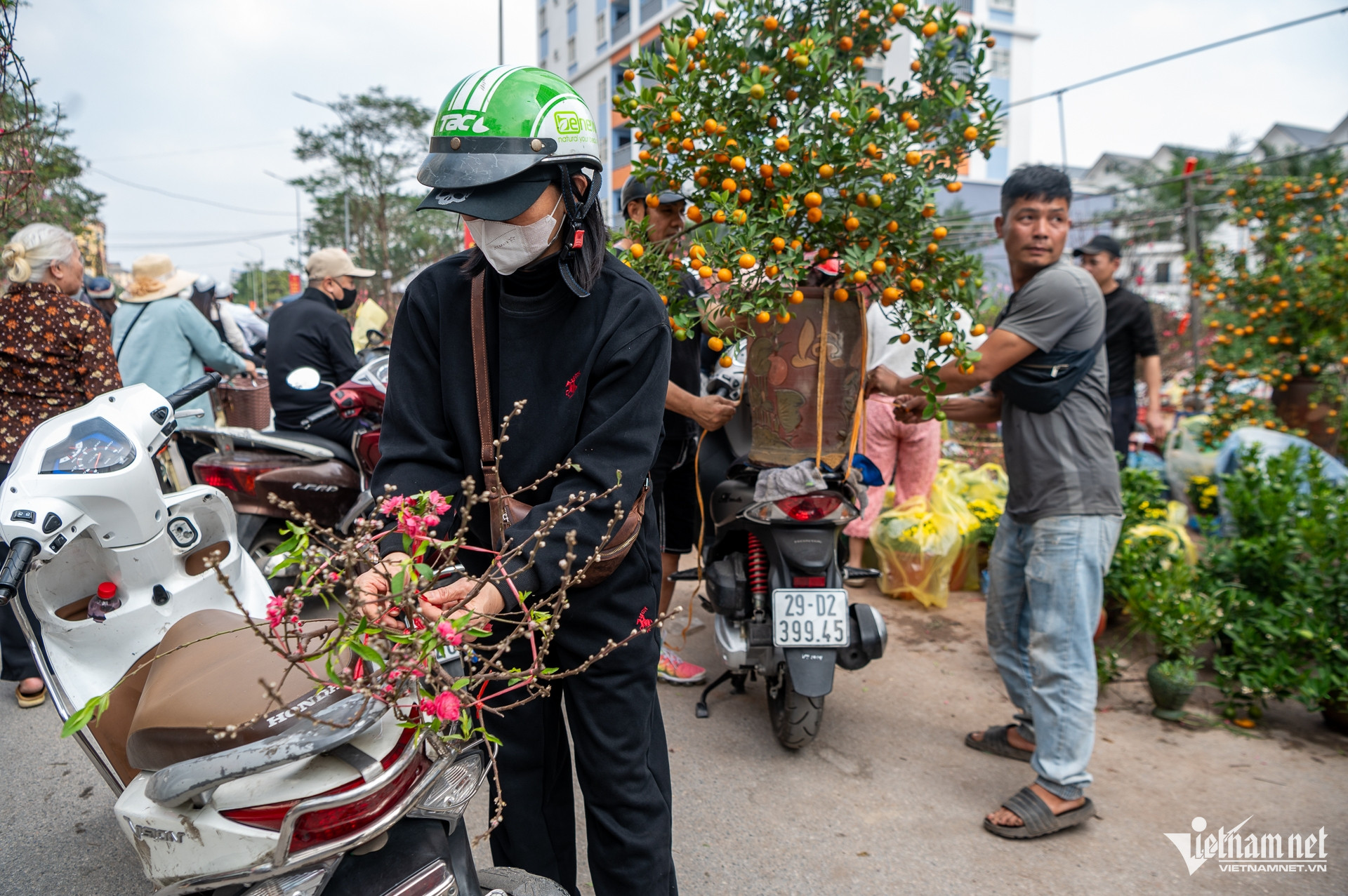 Ông Toàn (chủ hàng hoa) cho biết, năm nay việc buôn bán hết sức ảm đạm. Dù chiều 28 Tết, nhiều cây vẫn chưa tìm được khách mua, buộc ông phải cắt cành, giữ lại gốc mang về chăm sóc, chờ vụ hoa năm sau.