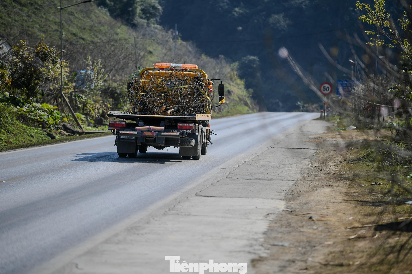 Trên các trục đường từ Mộc Châu về xuôi, những ngày gần đây đã bắt đầu xuất hiện các đoàn xe tải nhỏ, xe bán tải chở theo những gốc đào, cành mận vừa được đánh bầu, buộc gọn phía sau thùng xe.