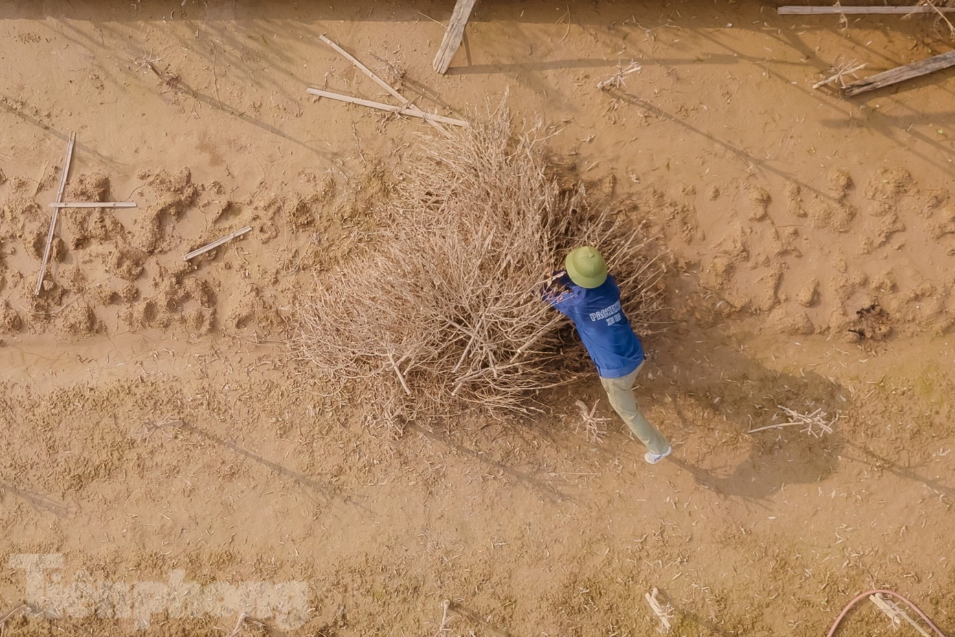 Ông Nguyễn Văn Liên - một người trồng đào lâu năm - xót xa chia sẻ: "Năm ngoái do bão Yagi chúng tôi mất trắng, tái thiết lại chưa đầy một năm giờ lại không còn gì, thêm một năm nữa trắng tay".