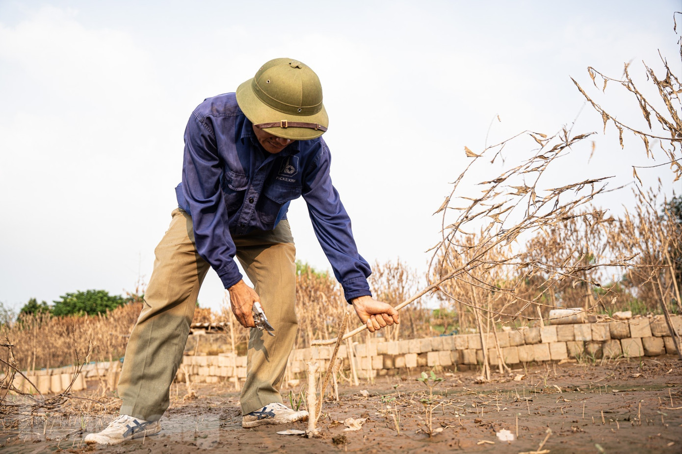 Trong khi những gốc đào chết phải chặt bỏ, một số người dân tận dụng đất trống để trồng xen kẽ các loại rau ngắn ngày nhằm tạo nguồn thu nhập tạm thời.