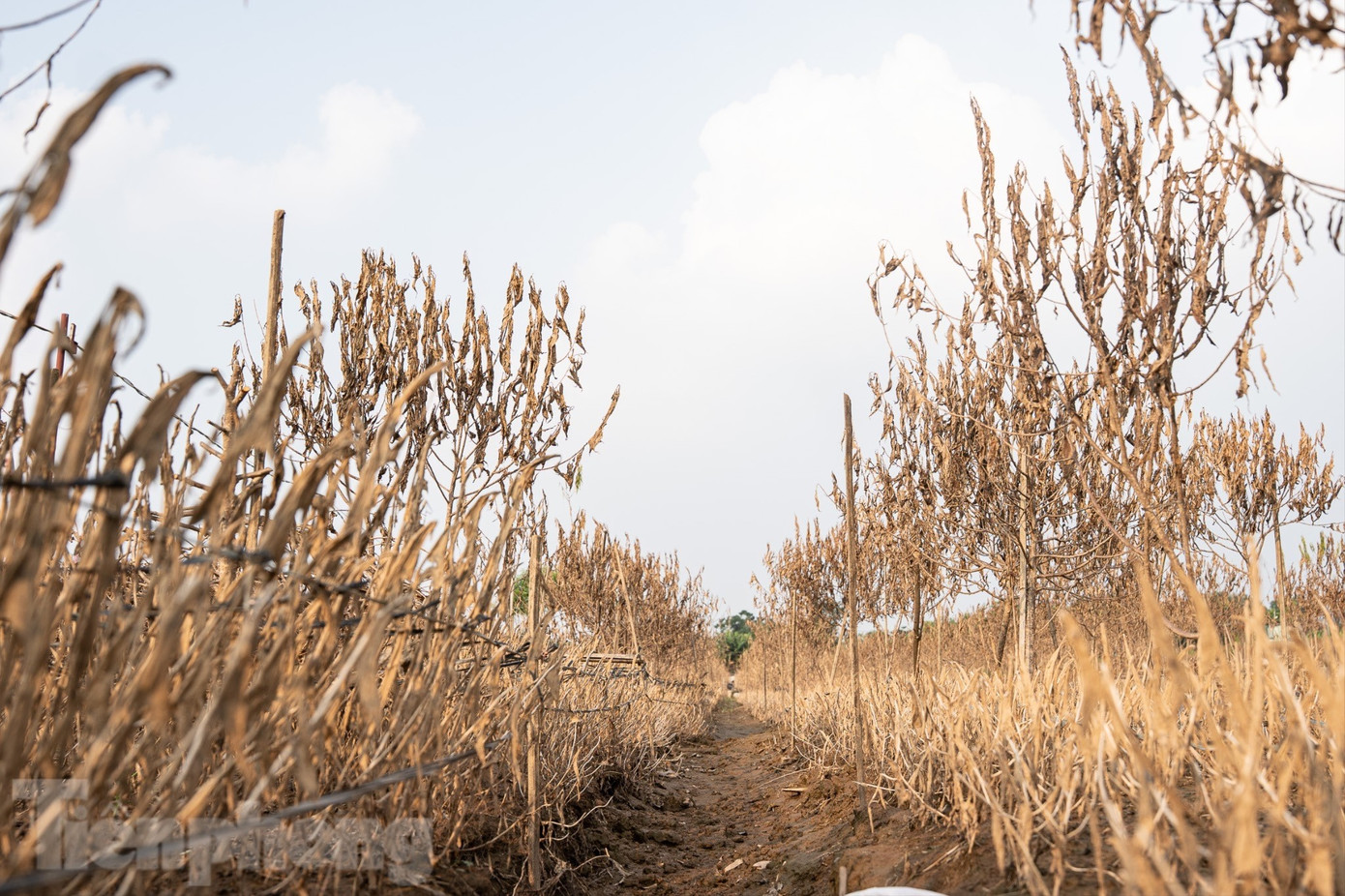 Những gốc đào chuẩn bị cho Tết Nguyên đán bị nước lũ nhấn chìm, trở nên xơ xác.