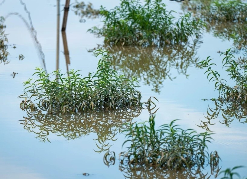 Vừa kịp hồi sau bão Yagi năm ngoái, nhiều hộ dân khu vực phường Hồng Hà, Phú Thượng lại "đứng ngồi không yên" khi bãi chuyên canh ven sông đều ngập trắng nước. Ảnh: Vietnamnet