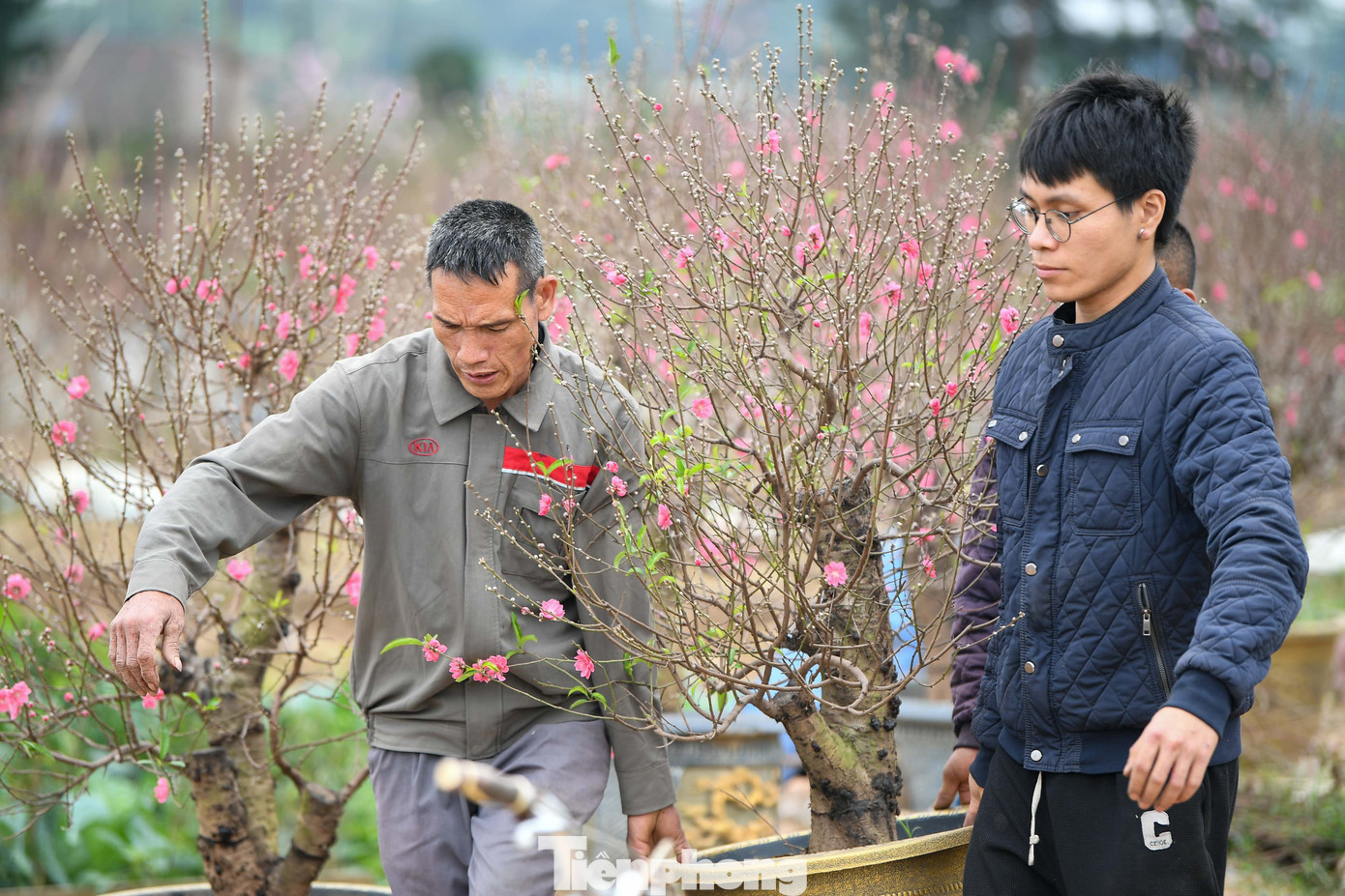 Phần lớn các cành đào đẹp đã được thương lái và khách quen đặt cọc từ sớm, chờ ngày xuất vườn đưa về chơi Tết. Nhiều gốc đào thế, đào lâu năm cũng đã có chủ, chỉ còn được giữ lại để chăm sóc đến sát ngày đưa đi.