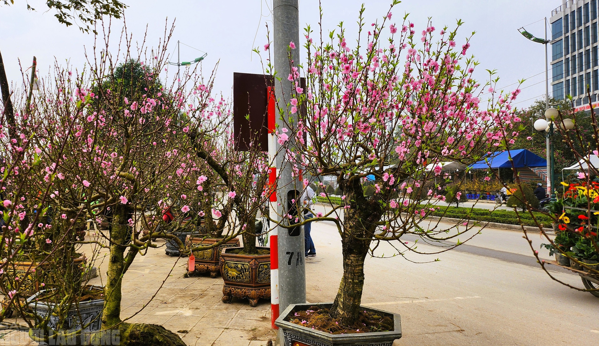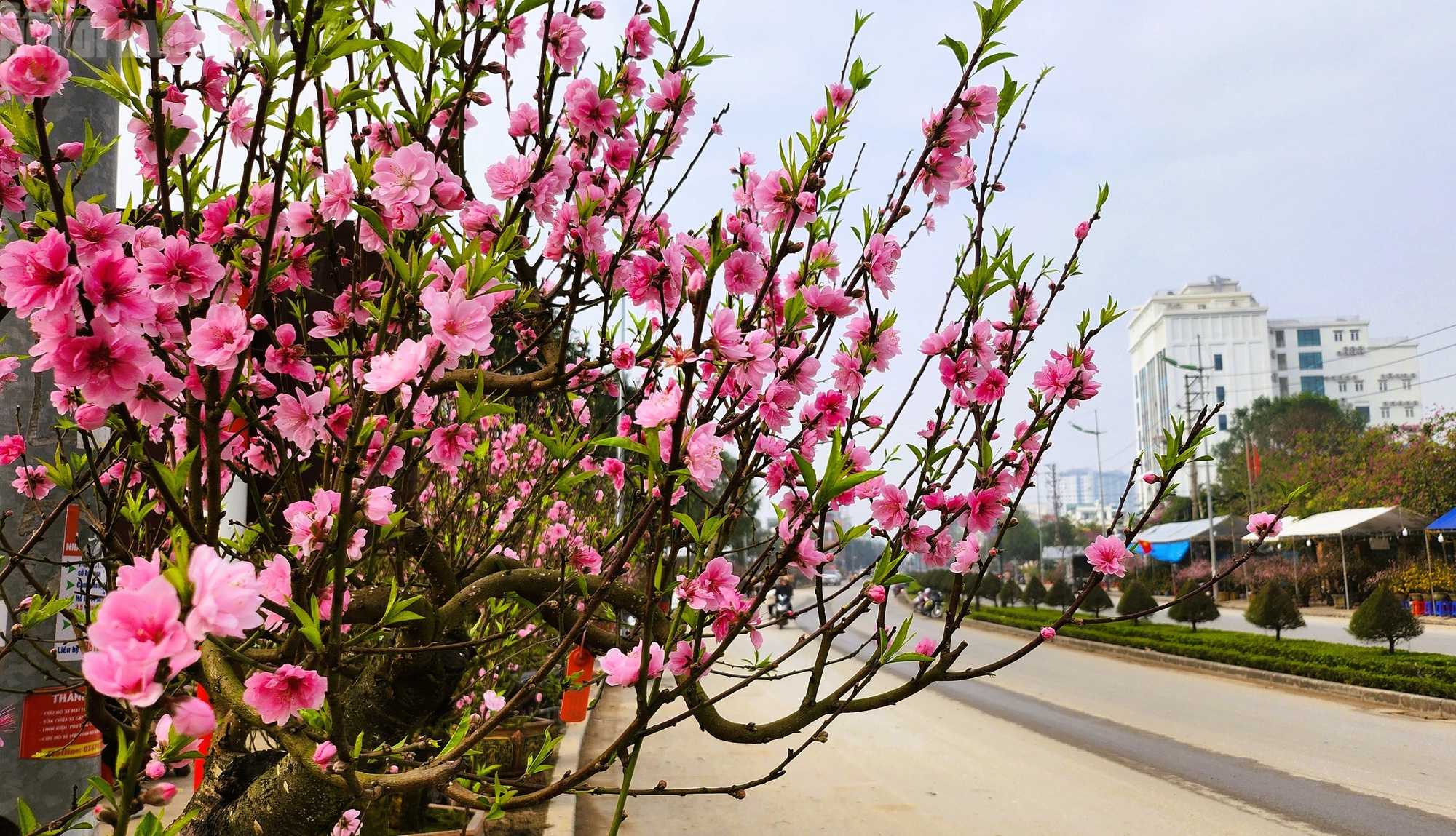 Hình ảnh đào nở thắm phố phường ở Thanh Hóa khiến tiểu thương "méo mặt":