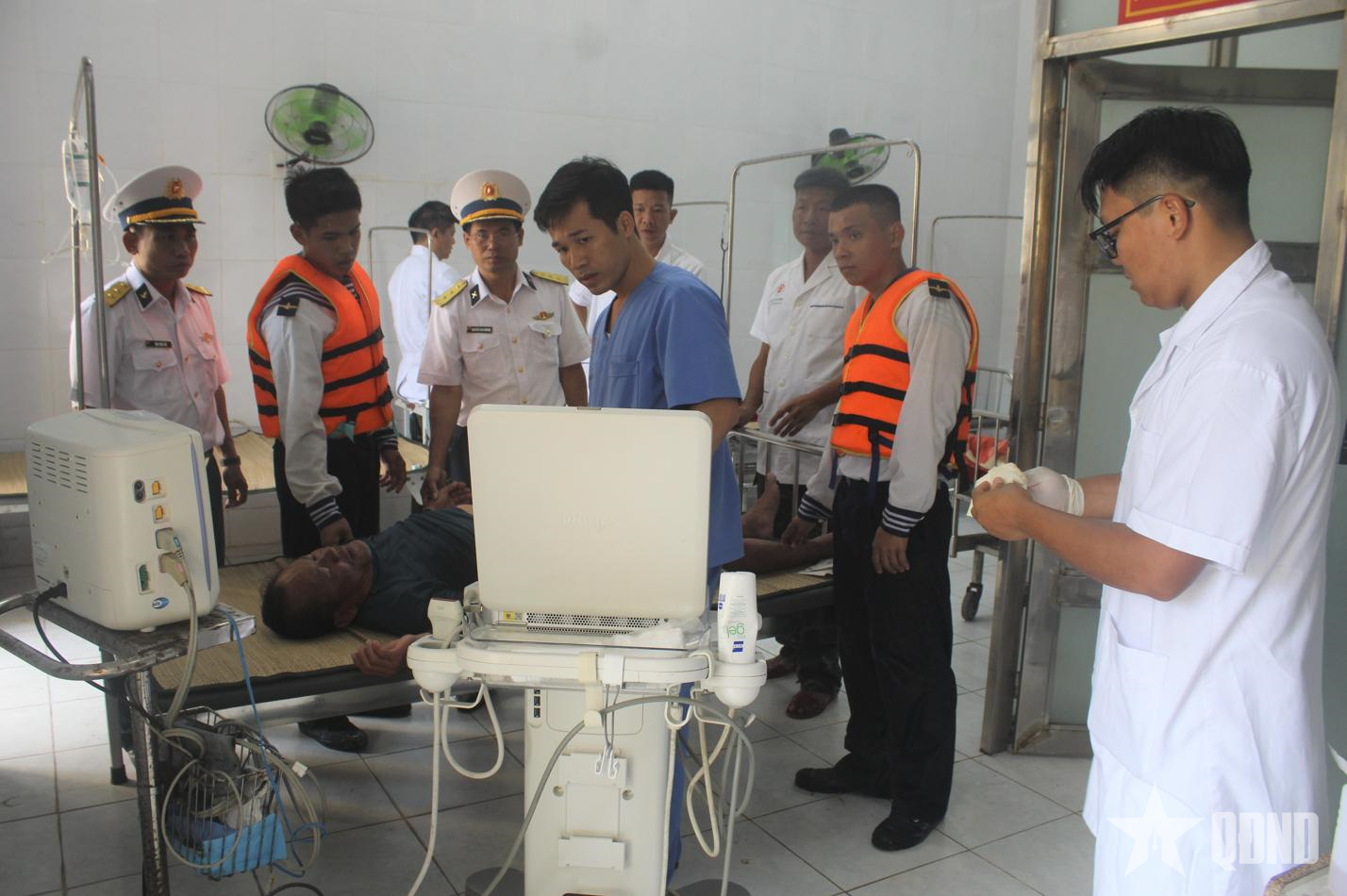Mặc dù điều kiện thời tiết sóng gió, sau khi nhận được tin báo, chỉ huy đảo đã cử lực lượng dẫn luồng cho tàu cá vào âu, lực lượng quân y kịp thời có mặt tại cầu cảng và đưa bệnh nhân về Bệnh xá cấp cứu.