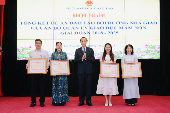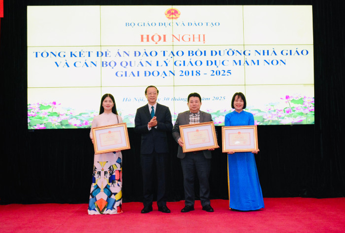 Tại hội nghị, Thứ trưởng Thường trực Bộ Giáo dục và Đào tạo đã trao tặng Bằng khen của Bộ trưởng Bộ Giáo dục và Đào tạo cho các cá nhân, tập thể có thành tích xuất sắc trong việc triển khai Đề án “Đào tạo, bồi dưỡng nhà giáo và cán bộ quản lí giáo dục mầm non giai đoạn 2018 - 2025".
