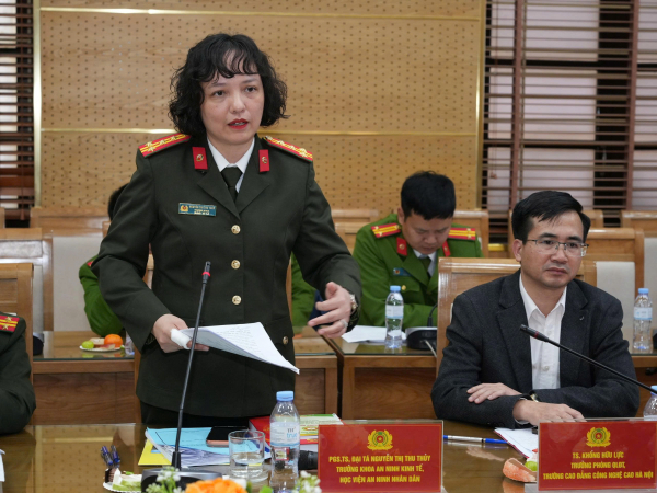 Đại tá, PGS.TS Nguyễn Thị Thu Thủy, Trưởng Khoa An ninh kinh tế, Học viện ANND chia sẻ thông tin tại hội thảo.