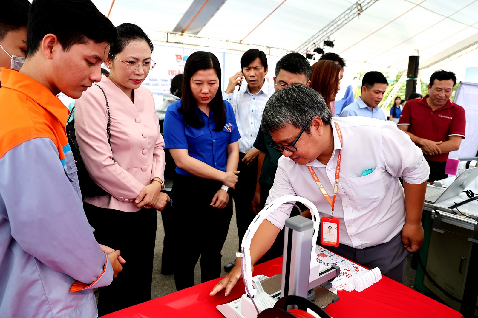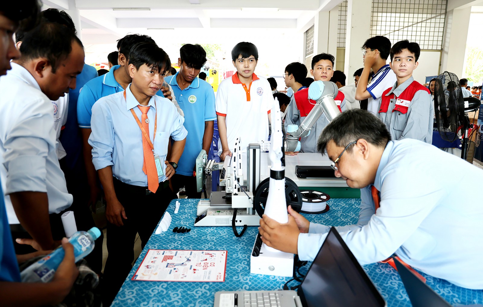 Sinh viên Trường Cao đẳng Nghề An Giang tham quan các gian hàng tại chương trình Chuyến xe hướng nghiệp Đức.