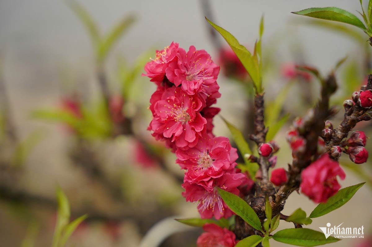 Những tán đào dày hoa, sắc đỏ thẫm tạo nên vẻ sang trọng, cổ kính hiếm có. Ảnh: Thúy Anh