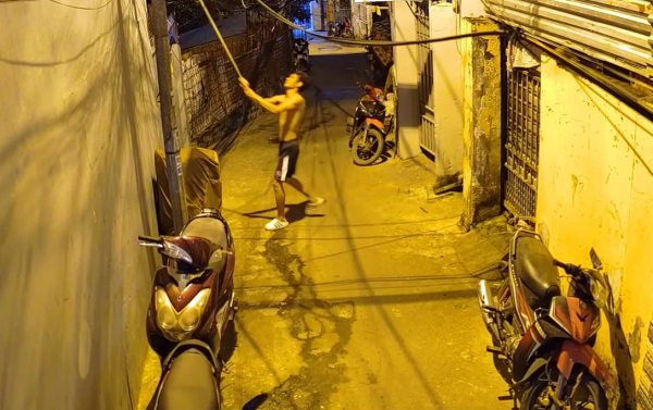 Hình ảnh Nguyễn Văn Tân đập phá camera an ninh do Công an lắp đặt.